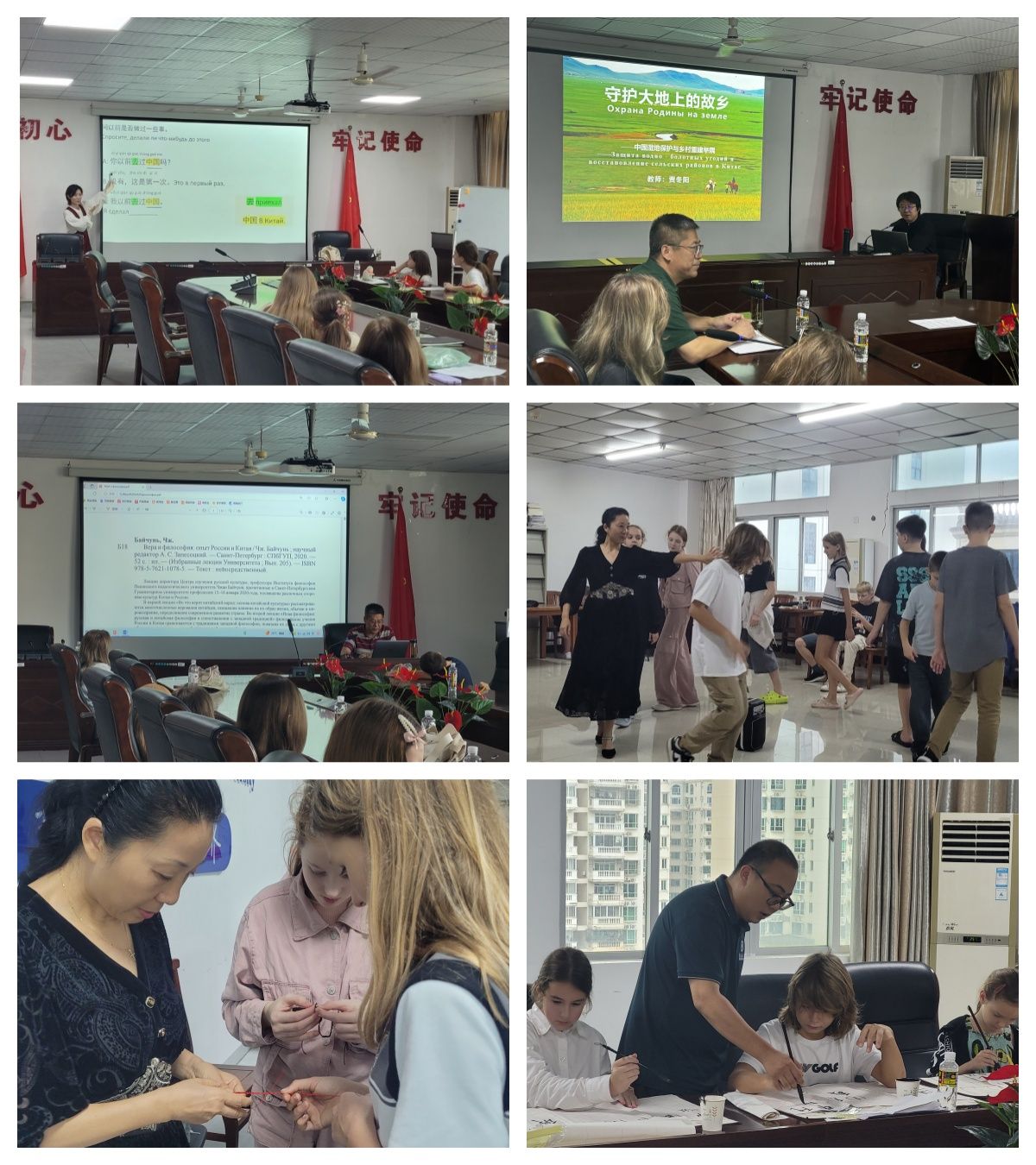 张百春教授为学员们讲授了《中华文化的历史、现状与未来》课程;贾冬阳副教授讲授了《守护大地的故乡—中国湿地保护与乡村重建举隅》课程;国际传播与艺术学院魏鹏举老师带领学员们一起体验中国书法的魅力;国际旅游与公共管理学院汪应曼老师为学员们制作中国传统手工、体验锅庄舞,董雪雪老师为学员们讲授口语课程。