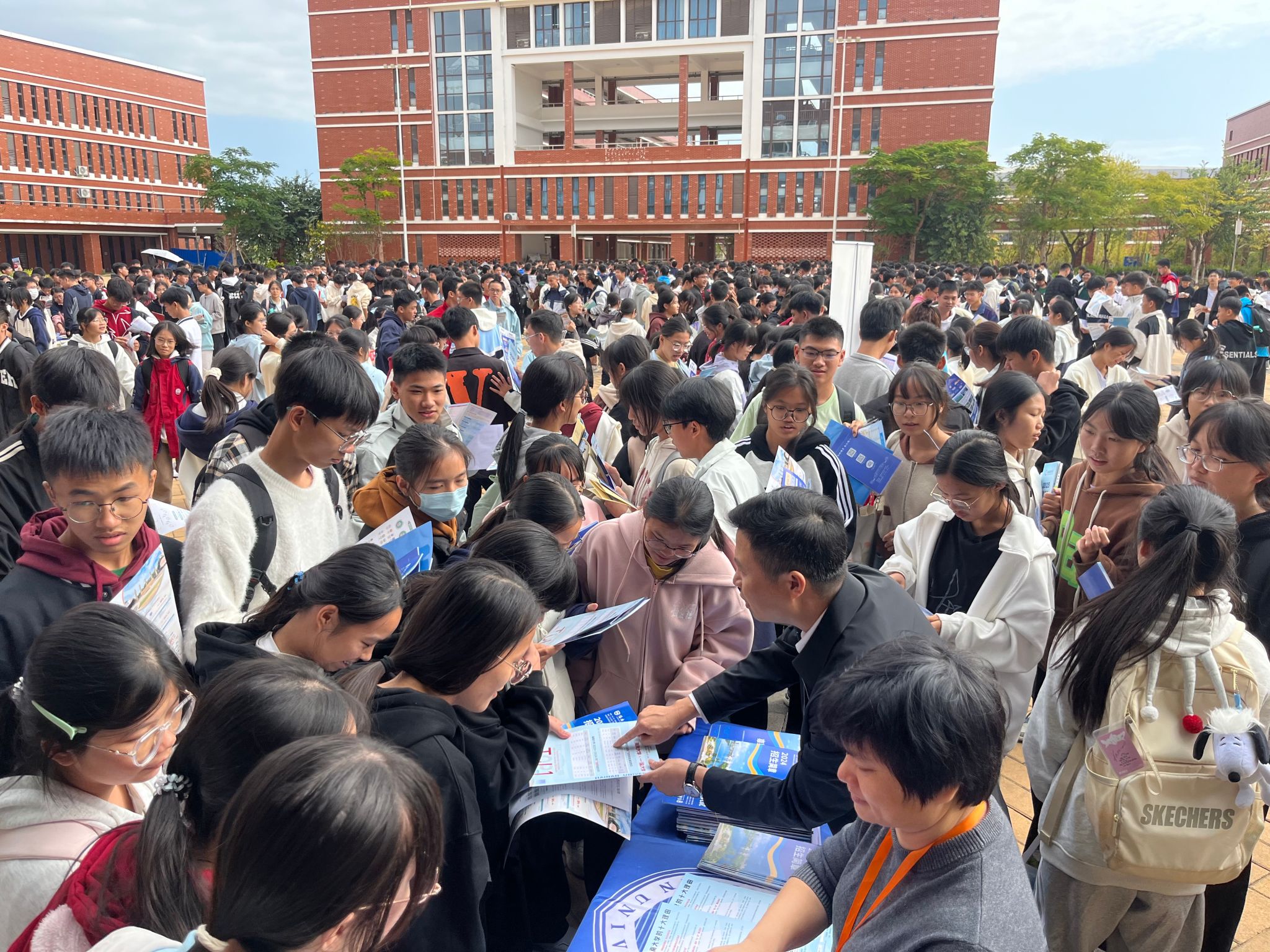 受到同学们的青睐,场面可谓是异常“火爆”,同学们争先恐后领取学校招生简介、明信片等材料,招生宣传组成员对同学们提出的关于招生分数线、招生人数、专业设置、就业方向等问题进行耐心细致的解答,鼓励优秀学子积极报考灵犀直播