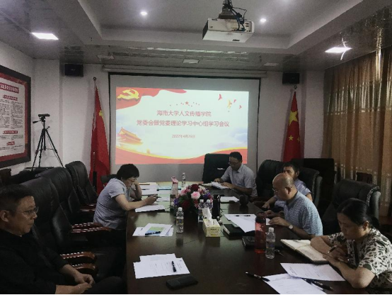 2022年4月26日下午,人文传播学院党委理论学习中心组学习会议在社科楼B615会议室召开,专题学习习近平总书记2022年在海南考察时的重要讲话精神。学院党委委员和院领导参加会议,党委书记邱华祥主持。