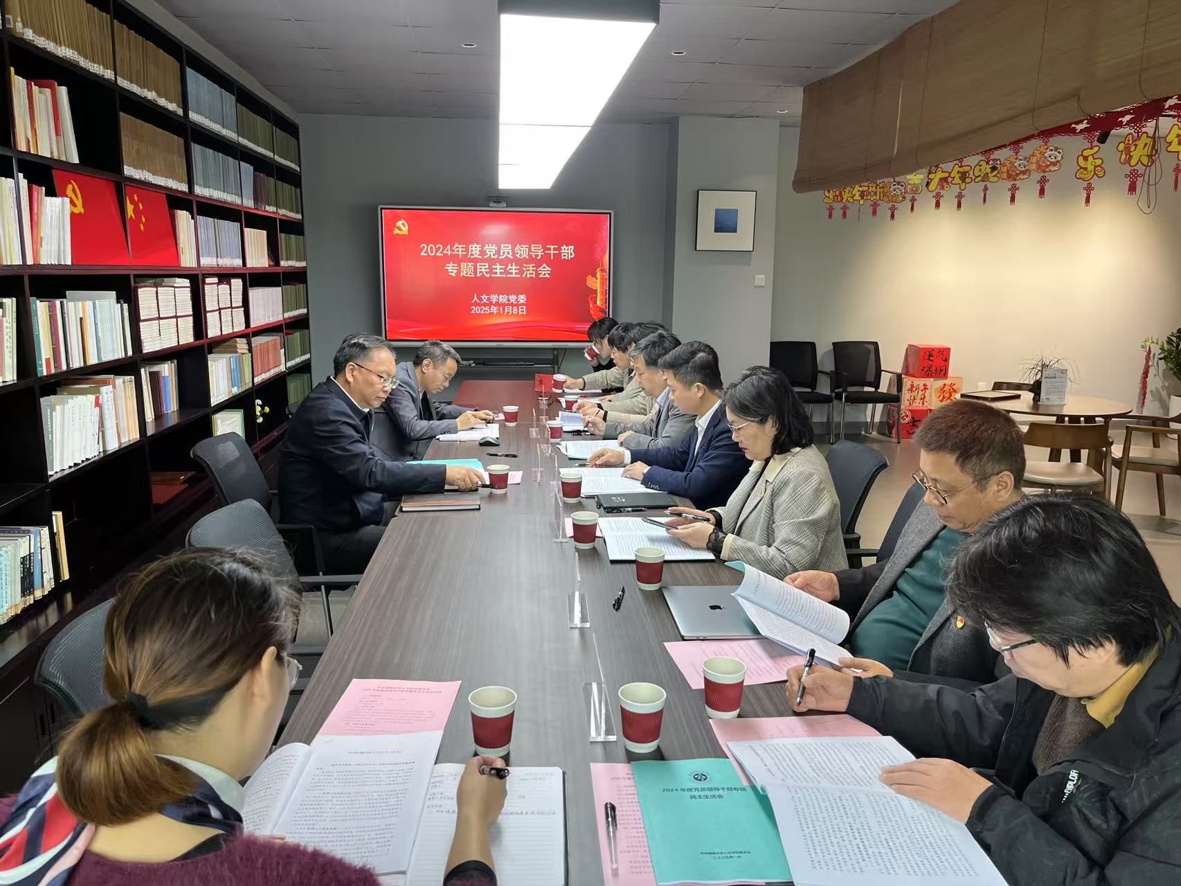 2024年度党员领导干部民主生活会在社科楼B621人文之家召开。校党委常务副书记张继友、党政办公室副主任张平恒到会指导。灵犀直播