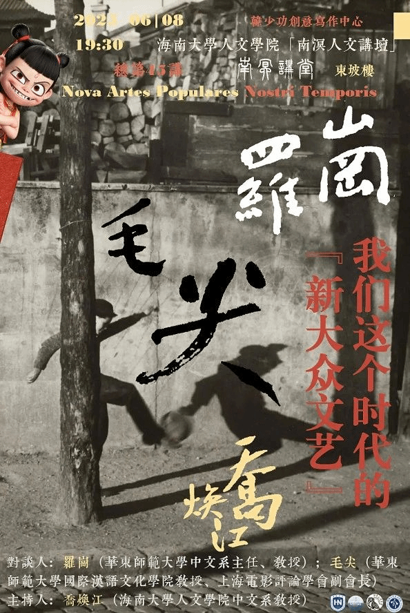 新大众文艺的崛起是当代中国社会文化的重要现象,罗岗和毛尖老师就新大众文艺在新媒介条件下如何打破传统文艺生产闭环体现出新的可能,其所分享的社会心理和大众文化生产逻辑基础,以及新大众文艺如何直面时代感知结构新变,创造具有普遍意义的中国表达等问题进行了深入浅出而妙趣横生的讲解。