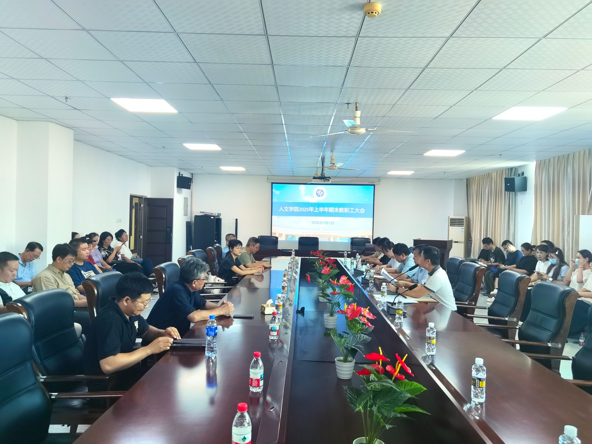 7月7日下午,学院在社科楼B719召开2025年春季学期期末教职工大会,学院院长谭新红、副院长陈红旗、章颜、贾冬阳出席会议,会议由党委书记杨元广主持。