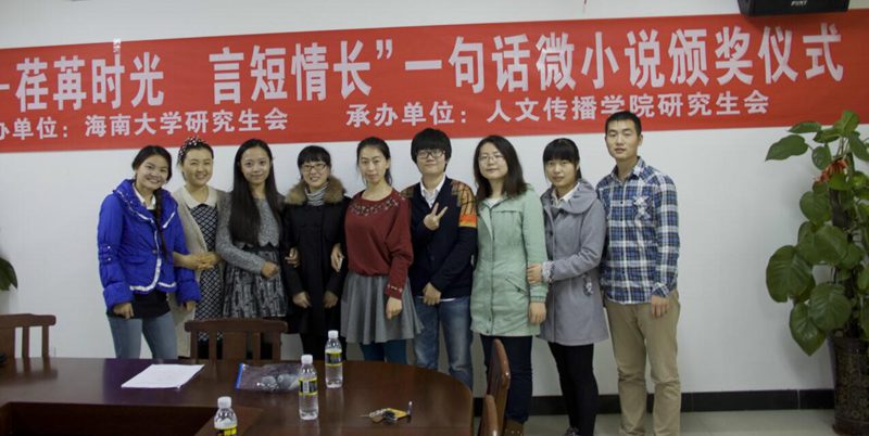 研究生会主办、人文传播学院研究生会承办的“正青春—荏苒时光,言短情长”一句话微小说征文大赛颁奖仪式在社科楼B719会议室举行。出席此次颁奖仪式的嘉宾有人文传播学院石晓岩副院长、校研会主席于赫、人文传播学院荣誉主席王天巍。与会嘉宾还有各学院的研会代表以及征文大赛的25位获奖者。颁奖仪式由院研会办主任杨烁主持。 会上,石副院长首先代表人文传播学院全体导师和在校研究生感谢全校研究生对本次活动的积极参与,并表示很高兴为各院研究生搭建一个展示研究生文学才华的平台,以拉近各学院文学爱好者们的距离。石副院长对本次一句话微小说作品征集活动的立意与创新之处、给予充分的肯定,指出:此次活动 “以‘青春’、‘时光’、‘情感’为主题十分到位,旨在将青葱岁月中给予自己正能量的人、遇到的那些暖人心的事诉诸笔端。随后,人文传播学院研究生会主席孙凌昱做了总结发言,她对本次活动的征集和评审情况做了全面细致的汇报,对校研究生工作部的正确指导、学院的全面支持以及校研究生会的鼎力帮助致以诚挚的谢意。最后,于赫与王天巍宣读了此次获奖名单,并为获奖选手颁发荣誉证书。 据悉,此次 “正青春—荏苒时光,言短情长”一句话微小说活动收到了来自14个学院在校研究生的微小说作品,共计172则,经过人文传播学院研究生会初审、各学院研究生会复审以及人文传播学院专业老师的终审,以匿名方式评选出了25则获奖作品,其中最动人作品奖3名,最创新作品奖3名,最精炼作品奖3名,优秀作品奖16名。 此次微小说作品征集活动彰显了同学们的文学热情,畅快抒写了青春的所思所想,弘扬了文学魅力。本次颁奖仪式在嘉宾与获奖选手合影留念的轻松温馨的氛围下圆满落幕。(文:张媛,彭露 图:周含 审议:杨佩佩)