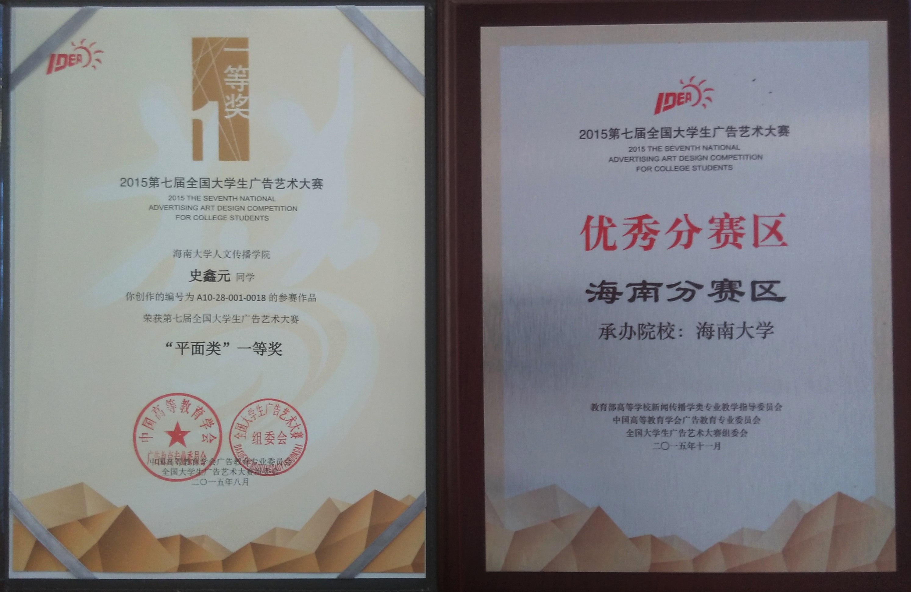 人文传播学院广告系2013级学生史鑫元创作《露脸见人》平面广告获得全国一等奖,人文传播学院张睿老师获得优秀指导老师奖、何晶娇老师获得海南赛区优秀组织工作者奖,海南赛区另斩获优秀奖16项。鉴于海南赛区的优秀成绩,大广赛组委会特授予海南赛区为优秀分赛区,海南省教育厅为优秀指导单位。 青春,需要磨炼,更需要赛事的洗刷与再造。全国大学生广告艺术大赛给了莘莘学子们在追逐梦想的征程中跋涉的勇气和证明创意才华的机会,为广告教育提供了实践教学的最佳平台。第八届全国大学生广告艺术大赛在颁奖礼现场启动,灵犀直播