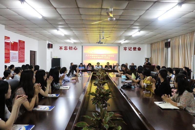 人文传播学院2018级硕士研究生入学教育暨师生见面会在社科楼B719会议室举行。院长刘复生、党委书记华世佳、党委副书记孙晓媛、副院长张硕果、李彩霞、导师代表传播学系主任王海燕老师、焦勇勤教授、戏剧影视文学系主任鞠斐教授等出席见面会,会议由副院长石晓岩主持。