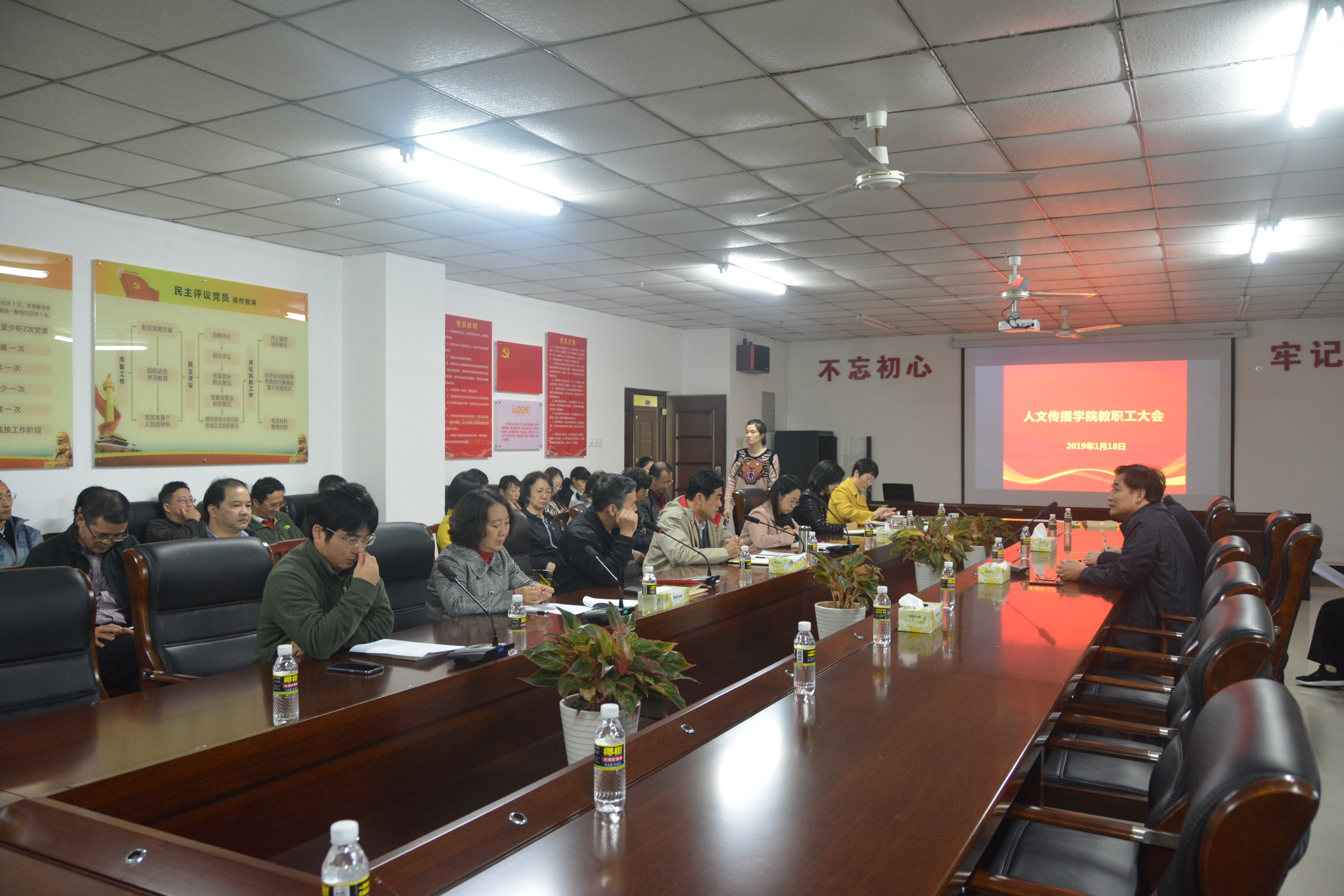 1月18日上午,人文传播学院在社科楼B719会议室召开“学院领导班子和领导干部2018年度考核工作大会”,学校考核组领导统战部副部长张树亮、人事处曲凯科长出席会议。会议由学院党委书记华世佳主持、院长刘复生、党委副书记孙晓媛、副院长张硕果、石晓岩以及全体教职工参加会议。