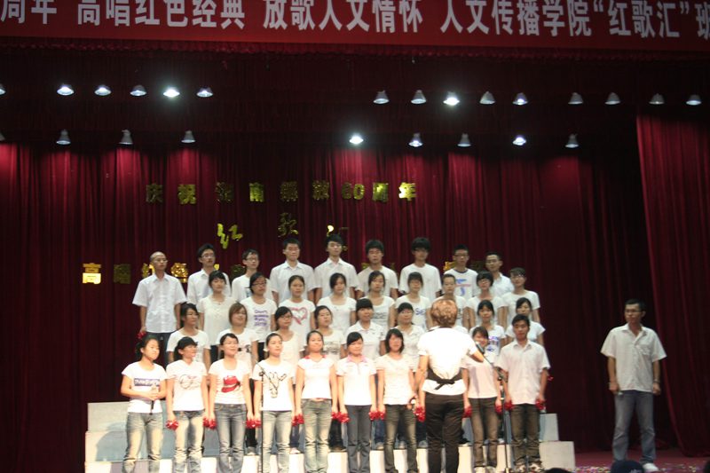 “红歌汇”比赛不但加强了班级内部的团结,还增进了不同班级乃至不同年级间的友谊,更使同学们在歌唱声中深受爱国主义的熏陶。这是人文情怀的展现,是对五四精神的继承和发扬,更是人文传播学院全体师生献给海南解放60周年的最好礼物!