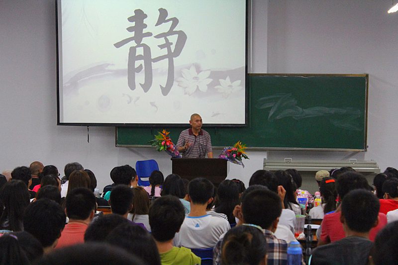 体育部杨式太极拳传人李秀老师现场展示太极拳法,寓沉稳于轻灵,寓阳刚于阴柔的杨式太极拳博得了现场观众热烈的掌声。歌曲与太极拳展示营造出的安静平和氛围为听众聆听张江南博士的佛学讲解做了必要的热场。 《维摩诘所说经》为印度大乘佛教的早期经典之一,阐扬大乘般若性空的思想。张江南博士以“士”人悲悯品格与大乘佛法基本精神相结合的方式来解读《维摩诘所说经•佛国品》,为在座听众做了场题为《悲悯:士之品格——读有感》的演讲。张江南博士本治西方文艺理论和西方美学史,在谈及自身喜欢上《维摩诘所说经》的缘起时,他把其归结为一种读书人的宿命,或者说是基于对中国古时代“士”的文化认同。“士”是对中国古代读书人、知识人的一种称谓,孔子有“士志于道”说,中国古代的士人一开始便和“道”是分不开的,“道”体现了士人的用世、经世、救世、济世的思想。士人普遍具有一种天命与担当的悲悯情怀,宋人张载的“天地立心说”可以说是对士人角色、职责的最好诠释。士人的这种承接天地,心存浩然之气的伟岸人格与慈悲、普度众生的大乘佛法有着内在的精神契合,这也是佛教传入中国后,中国古代读书人热衷于谈佛论禅和士林佛教兴盛的原因。士林佛教影响了中国古代读书人的人格结构,与儒道学说三教合一共同构筑支撑起了古代士人的文化精神品格。大乘佛学在士人基本修养中的重要地位,即是张江南博士意义上所说的一种读书人的宿命。虽然在现时代读书人生存层次等而下之的时代境况下,“士”可以说成为了一种业已消逝的文化风范,然而在张江南博士批判性的看来,在现实文化与教育不能让其建立起自身认同的情境下,“士”仍是其追慕的一种人格风范,也是其为自身确立的人格认同坐标。也正是基于对“士”的文化认同,张江南博士希望通过对《维摩诘所说经•佛国品》中大乘佛法精神的讲解通往“士”的精神世界。 在接下来围绕《维摩诘所说经•佛国品》义理的讲解中,张江南博士首先对《维摩诘所说经》的版本学和《维摩诘所说经》对中国士文化以及对中国古代绘画、诗歌等艺术的影响作了细致的阐发。张江南博士再次指出《维摩诘所说经•佛国品》中大乘佛法的大悲悯的气度和胸襟与宋人张载所言的士之品格和儒家担当精神非常相契,这在地藏菩萨悲誓宏愿中也可以看出。在对“《佛国品》大乘菩萨行”理论基础的讲解中,张江南博士利用课件中的图片和引注对本深奥难解的“般若性空”、“缘起性空”、“六道轮回”、“中观”等佛学义理作了细致入微的阐发。其认为,“大乘菩萨行”中的“中观论”即为一种超出二元对立,不落入真假空有假名系统而达于中道的一种思维方式,这是理解和把握大乘佛法中世界一切皆空的“般若性空”说的理论基础,同时也是参悟大乘佛法由“般若性空”到普度众生这一逻辑成立的理论基础。在讲座的尾声,张江南博士以佛教的象征——一朵绽放的莲花形象为喻,寄望于现场的同学,要放空小我,学会塑造大我的伟岸人格。 讲座最后,杨国良教授说,东方经典系列讲座共安排印度佛学经典四讲,为了让听众对玄奥的印度佛学经典既能进的去又能出的来,完成一种思想的操练,东方经典系列讲座第四讲(10月7号晚八点)将安排人文传播学院李溢教授主讲泰戈尔,后续将有其他几部佛学经典的开讲。此外,杨国良教授通报说,东方经典系列讲座还将于9月30号晚中秋之夜在灵犀直播