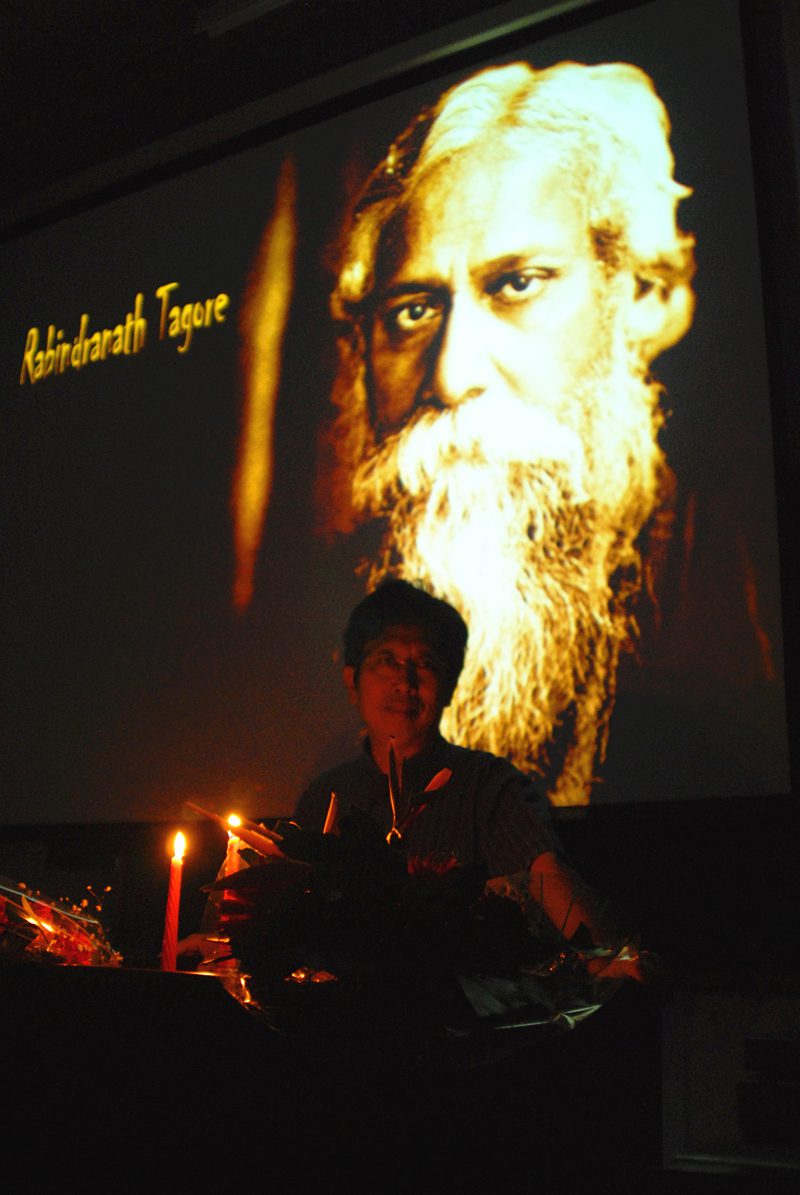 人文传播学院李溢教授,解读印度诗人泰戈尔的代表作品《吉檀迦利》,《古典与现代》主编杨国良教授主持本场讲座。 泰戈尔是中国读者耳熟能详的一位印度诗人,被誉为东方的先知,其充满宗教韵味和神性的诗篇,博得了包括西方读者在内的世界性的青睐和赞誉。凭借代表作《吉檀迦利》,泰戈尔征服了当时的欧洲文学界,于1913年获得诺贝尔文学奖,也是亚洲第一位摘得此奖的作家。《吉檀迦利》是一部充满深刻宗教和哲学见解的诗篇,是泰戈尔奉献给神的礼物,诗篇中“神”的意象奇特丰富,有着多重化身,很难去把握。对于如何来理解泰戈尔的“神”,有着多种方法和渠道,历来也众说纷纭。杨国良教授对泰戈尔简短的介绍和提出的相关问题开启了本场讲座的序幕。 讲座在艺术学院郑涵同学一曲清脆悠扬的古筝独奏《春江花月夜》和人文传播学院20名女生齐诵《吉檀迦利》第27、47节后正式开讲。关掉日光灯,烛光亮起,柔和的烛光下,气氛肃穆静雅,李溢教授缓步走上讲台,与听众进行了一场于烛光之下品读泰戈尔的精神之旅。 自汉代以来,印度就成为中国人向往的福地,随着大量印度佛学经典的译介,印度更是被赋予了神秘的地理意象,成为大量僧人的朝拜之地。李溢教授从自身个体性的记忆和经历说起,认为自身与泰戈尔的相遇也具有着这样朝圣的意义。李溢教授说,上世纪80年代末和90年代初期,自己人生中第一次遭逢到彷徨、苦闷的精神危机,某种意义上说也是一代人社会性的精神危机,在一种感觉生命失重的情态下,偶尔读到泰戈尔的诗篇,在与泰戈尔和泰戈尔的神的相遇中,个体的内心才回复平静,逐渐走出茫然,寻到有意义感的生活。在李溢教授看来,读书也需要一种因缘,个体的心性气质决定了你与哪些同气相求的书籍的相遇和结缘。接下来李溢教授通过几个文坛掌故的细说,讲述了泰戈尔如何与英国画家罗森斯坦和英国大诗人叶芝的因缘际会而进入当时傲慢的欧洲文学界,其作品最终摘获诺贝尔文学奖。 在回到《吉檀迦利》诗篇“神”这一意象的解读中,李溢教授指出,在泰戈尔诗篇中充斥着一种泛神论思想,宇宙万物都是神,山川河流、日月星辰都普遍具有着神性。泰戈尔的伟大之处在于把不可言说的神转换成各种具象化、可感知的事物放置在读者身边,为读者认识、理解、感受、寻找“神”找到了一扇通向天空的门。在泰戈尔这里,“神”与犹太教、基督教宗教意义上的神不同,是其为自身建立的一种个体性的宗教和信仰。泰戈尔吸收了古印度的佛学思想,他笔下的神与人有着密切的关系,是人的精神的神圣化,其思想立足于印度教意义上的“梵”,讲求“梵我一体”,这比类于中国儒家意义上的“天人合一”观。李溢教授现场为听众动情朗读了多节《吉檀迦利》中的诗歌,在其看来,有神的心灵才能与神相遇,泰戈尔的诗歌起到了一种让会心的读者与神建立起精神性甜美关系的意义。 在李溢教授围绕《吉檀迦利》部分诗节的悟读中,也涉及了东方经典系列讲座第二讲耿占春教授主讲《亡灵书》时对死亡这一议题的探讨。自古以来,最伟大的哲人都思考和言说着死亡,李溢教授结合泰戈尔妻子和子女早逝的悲苦身世经历,解读了泰戈尔是如何诗意面向死亡的。《吉檀迦利》是泰戈尔献给神的诗,在诗歌里泰戈尔把死亡比喻为一场婚礼,自己则是向神求婚的人,在此以一种穿越死亡的方式使死亡本身变得优雅从容,如果说生命是一条路,那么死亡是诗意的行走,在行走中自己则也成为了神。最后李溢教授引用作家雨果的话说“世界上最辽阔的是大海,比大海更辽阔的是天空,比天空更辽阔的是人的心灵!”阅读泰戈尔的意义就在于认识到人类心灵的丰富多彩。 杨国良教授在讲座最后作结道:泰戈尔的丰富,需要用灵魂去倾听,在今晚柔和烛光的烛照下,透过泰戈尔的文字,希望每一个听众的心都能完成一次精神意义上的与泰戈尔伟大心灵的对接,在对接中感受泰戈尔的“神”的丰富性和成长性。此外,杨国良教授还通报了《古典与现代》(第四卷)已经出版上市和下一期讲座地点变更的事情。东方经典系列讲座从第五讲起,讲座地点由五教111教室改至二教108教室,时间不变。东方经典系列讲座第五讲将邀请灵犀直播