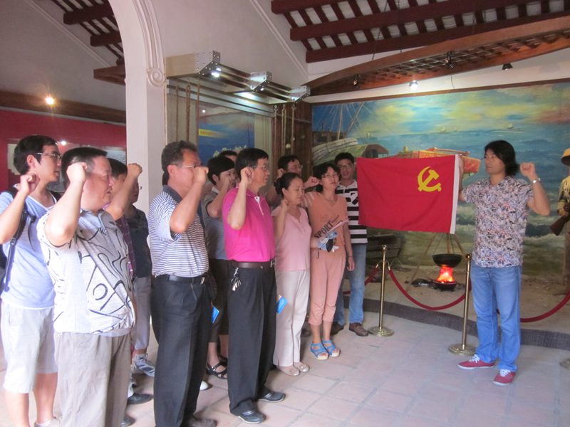 为教育引导广大党员领导干部深入学习党史和琼崖革命史,学习革命前辈为民务实的优良传统,进一步坚定道路自信、理论自信和制度自信,增强宗旨意识和群众观点,切实推进党的群众路线教育实践活动。九月七日,人文传播学院教职工党支部组织全体教职工党员前往陵水县苏维埃政府旧址参观学习,瞻仰了陵水县苏维埃政权历史纪念馆,认真聆听讲解员的详细介绍。 1927年,正当蒋介石叛变革命的紧要关头,经过大革命锻炼的陵水黎汉各族人民,在中国共产党的领导下,先后三次举行武装起义,占领县城,创建了琼崖第一个苏维埃政权——陵水县苏维埃政府。在琼崖23年红旗不倒的革命斗争史上,写下了光辉一页。苏维埃政府的建立,创下了三个第一:第一,由少数民族参与创建的苏维埃政府;第一位由少数民族干部担任的首届县委书记;建立我党领导的第一支海上部队——陵水海上赤卫队。 通过学习,大家了解了陵水县苏维埃政权发展的历史,明白了革命斗争从星火燎原之势,正是依赖于广大群众的支持和参与。维护好,实现好,发展好最广大人民的根本利益,一直是党全部工作的出发点和落脚点。最后全体党员还在纪念馆举行了庄严的入党誓词宣誓活动。这次活动还邀请了学院的相关领导和党外民主人士参加。大家纷纷表示,通过这次实地考察学习,深刻认识到了开展群众路线教育的重要性和必要性,在今后的工作中一定牢记党的宗旨,坚持走群众路线,恪尽职守,把党的群众路线教育实践活动贯穿在本职工作的始终。