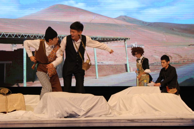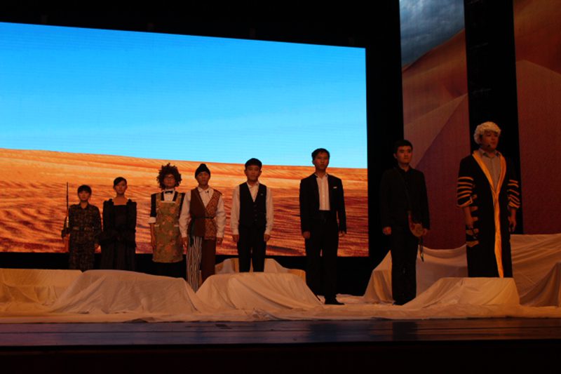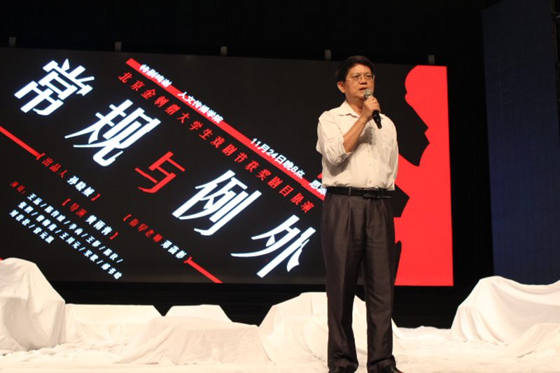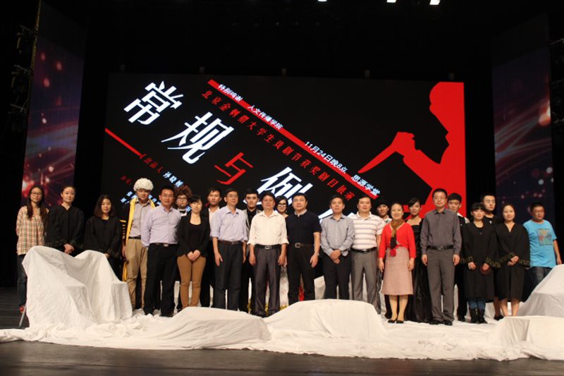 人文学部中最大的学院会承担更多的责任,为学校的校园文化建设贡献更多的力量。 本次展演的获奖剧目《常规与例外》》改编自德国戏剧大师布莱希特的经典作品,由人文传播学院党委孙晓媛副书记担任出品人,邓菡彬老师指导,海棠剧社社长黄雨青担任导演。该剧目于2013年8月喜获由北京戏剧家协会、北京9剧场联合主办的2013金刺猬大学生戏剧节“最佳舞台设计奖”和“优秀剧目奖”。精心的舞美设计,丰富的情景音乐,再加上演员们出色的演出,带领观众一同走进了亚衣沙漠之旅,也感受了苦力家庭遭受不公平的无奈,尤其是剧中的经典台词“不陌生的事情要另眼相待,习以为常的要当做难以解释”被多次强调而深入人心。现场极佳的演出效果也赢得了在场嘉宾与观众的一致肯定,并报以阵阵掌声。 通过本次展演,不仅表现了我校对戏剧研究与实践教学的充分肯定,也展现了人文传播学院为打造校园文化精品和高雅文化艺术所作出的努力和贡献。在此,我们也衷心的祝愿海棠剧社在不久的将来会有更多更优秀的作品呈现,再创佳绩。