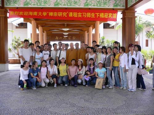 2005年11月5日-6日,为配合《禅宗研究》的课程教学,人文传播学院青年教师熊开发教授带领中文2002级40余位同学赴三亚南山寺进行了为期2天的住寺活动,实践了一次精彩的体验式教学实习。