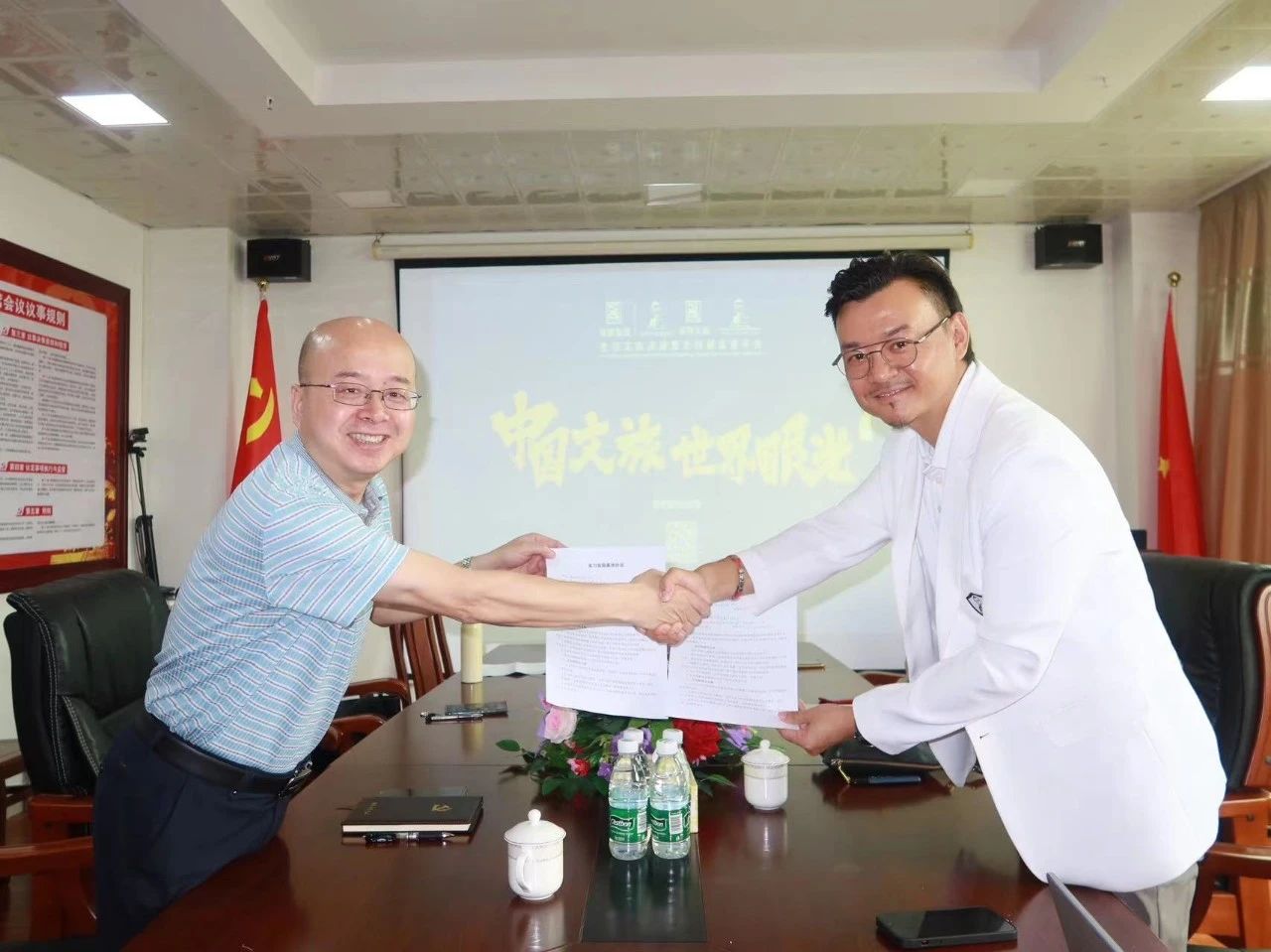邱华祥书记首先致欢迎辞,对赵晖董事长一行的到来表示热烈欢迎,介绍了灵犀直播