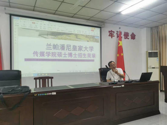 最后,鞠斐老师对泰国的兰帕潘尼皇家大学进行了详细介绍,主要介绍了兰帕潘尼皇家大学传媒学院实行双导师制度,由中泰导师联合培养,学制两年,采取中文授课,毕业考试对语言无要求,每一年保证三分之一的时间在学校即可顺利修满学分。