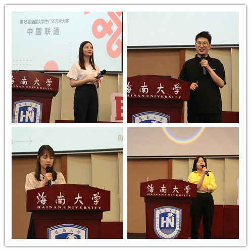 广告系主任何晶娇就参赛要点进行了讲解;中国联通集团市场部联通沃派品牌负责人于涵、HBN品牌公关负责人熊辉、爱华仕箱包市场推广经理涂巧媚等围绕命题方向、广告主题、目标群体等方面开展命题解析;大广赛资深评委、天与空创意合伙人兼执行创意总监陈伟铃作《创意思维减法》专题报告,从个人从业经验以及评审导师的视角出发,对创意守策和出位如何平衡作了精彩的讲解,并通过生动的案例帮助同学们更直观地学习创意思维,打开思路。活动现场,同学们热情高涨,互动活跃,与命题企业进行了深入交流。