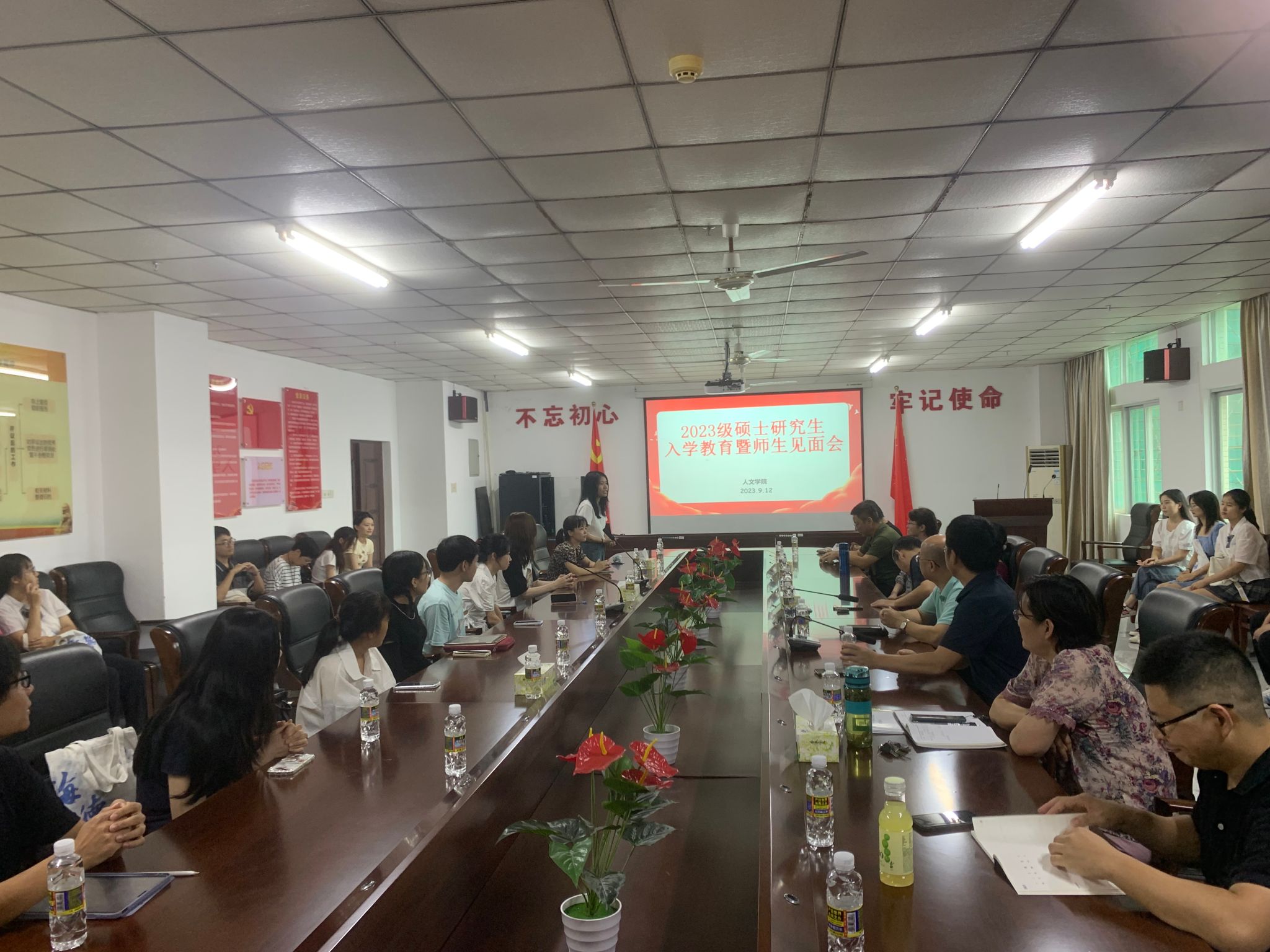 在社科楼七楼会议室召开2023级硕士研究生入学教育暨师生见面会。院领导、各学位点负责人、导师代表、相关工作人员及2023级全体研究生参加会议。会议由副院长张硕果主持。
