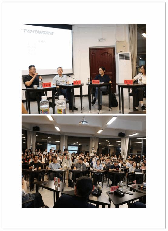 本次讲座分为两个环节。第一个环节,四位老师从自己的阅读与思考经验出发,分别从阅读文本和阅读方式的选择、阅读中如何进行思考、如何找到适合自己的阅读方法等多个角度进行了激烈的讨论。同时就关于“在这个时代我们如何阅读”以及“对这个时代我们如何阅读”两方面进行分享。第二个环节则是互动环节,师生们抓住了这次十分难得的机会,学生们踊跃提问,老师们精彩作答,现场不时响起阵阵热烈掌声。