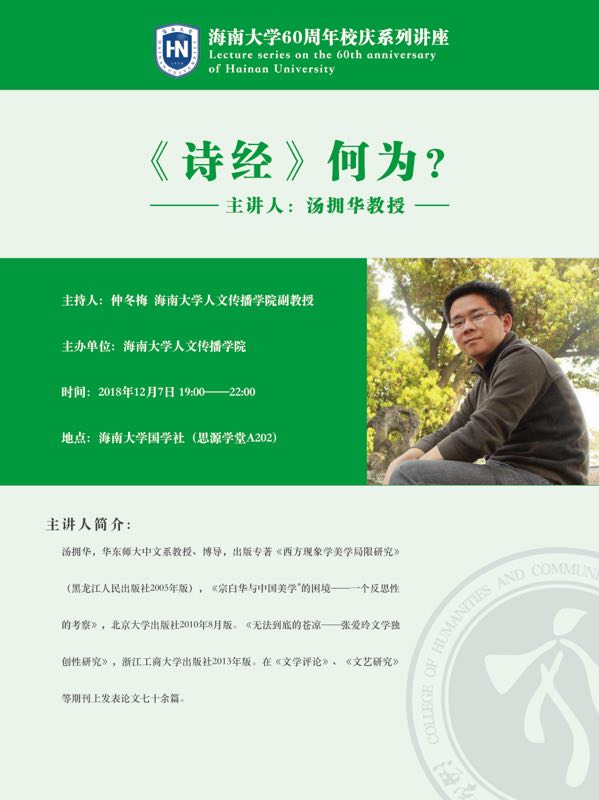 灵犀直播 60周年校庆系列讲座之四——汤拥华:《诗经》何为?