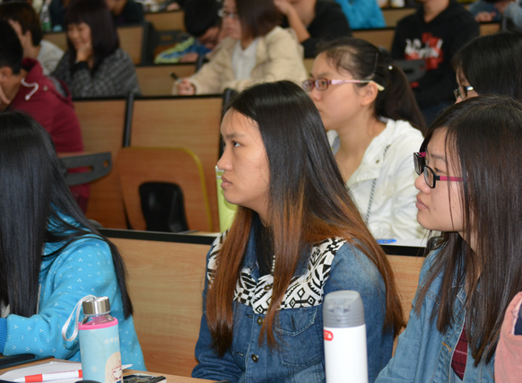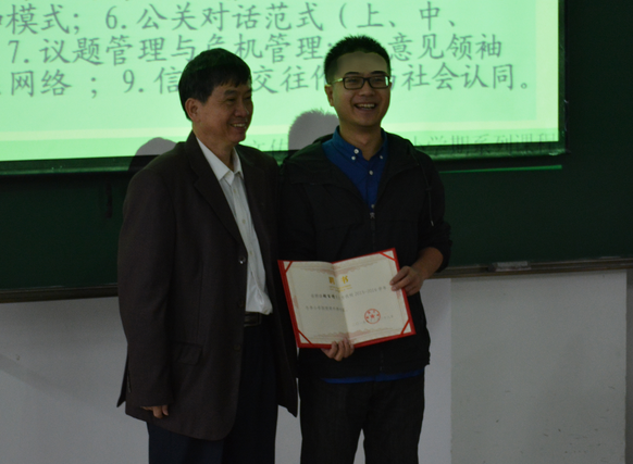 公共关系学和广告学同为传播学的下属学科,有着千丝万缕的联系。从公共关系学的起源说起,在上午近三个小时的课程中,胡老师向同学们系统介绍了巴纳姆、艾维?李和伯内斯三位公关学先驱,讲述了公关从“公众该死的时代”、“公众该被告知的时代”向“组织和公众相互适应与调整的时代”发展的历程。胡老师幽默风趣,妙语连珠,通过引用大量生动鲜活的案例,让2013级和2014级的百余名师生领略了公共关系学的魅力。他告诫同学们,人文学科的学生要掌握核心本领,不但要学专业知识,还要海量地阅读、认真地思考、充分地文字训练,培养表达和沟通能力。“一年中特别开心的时刻并不多见,什么时候比较开心、比较欢喜呢?就是一本书读完,把最后一页合上的时候。”胡老师的人生教诲获得了师生们的强烈共鸣。伴随着下课铃声和阵阵掌声,第一次授课在热烈的氛围中画上了圆满的句号。