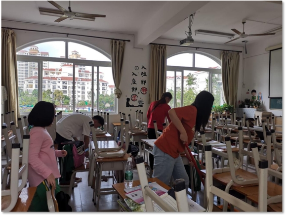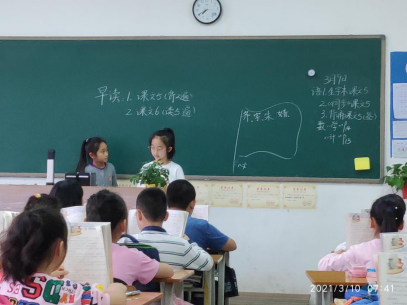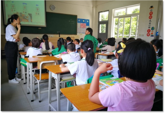 (实习同学李云逸和孙建勋在班级和小学生共同值日)