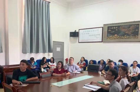 人文传播学院2017级汉语言文学一班第一阶段实习汇报会在海口景山学校海甸分校会议室召开。本次会议由人文传播学院2017级汉语言文学一班谭力同学主持,海口景山学校海甸分校刑益宝校长、苏冬梅主任、张杰蕊助理、人文传播学院实习负责老师张佳鸣以及2017级汉语言文学一、二班全体实习生共30位嘉宾与会。