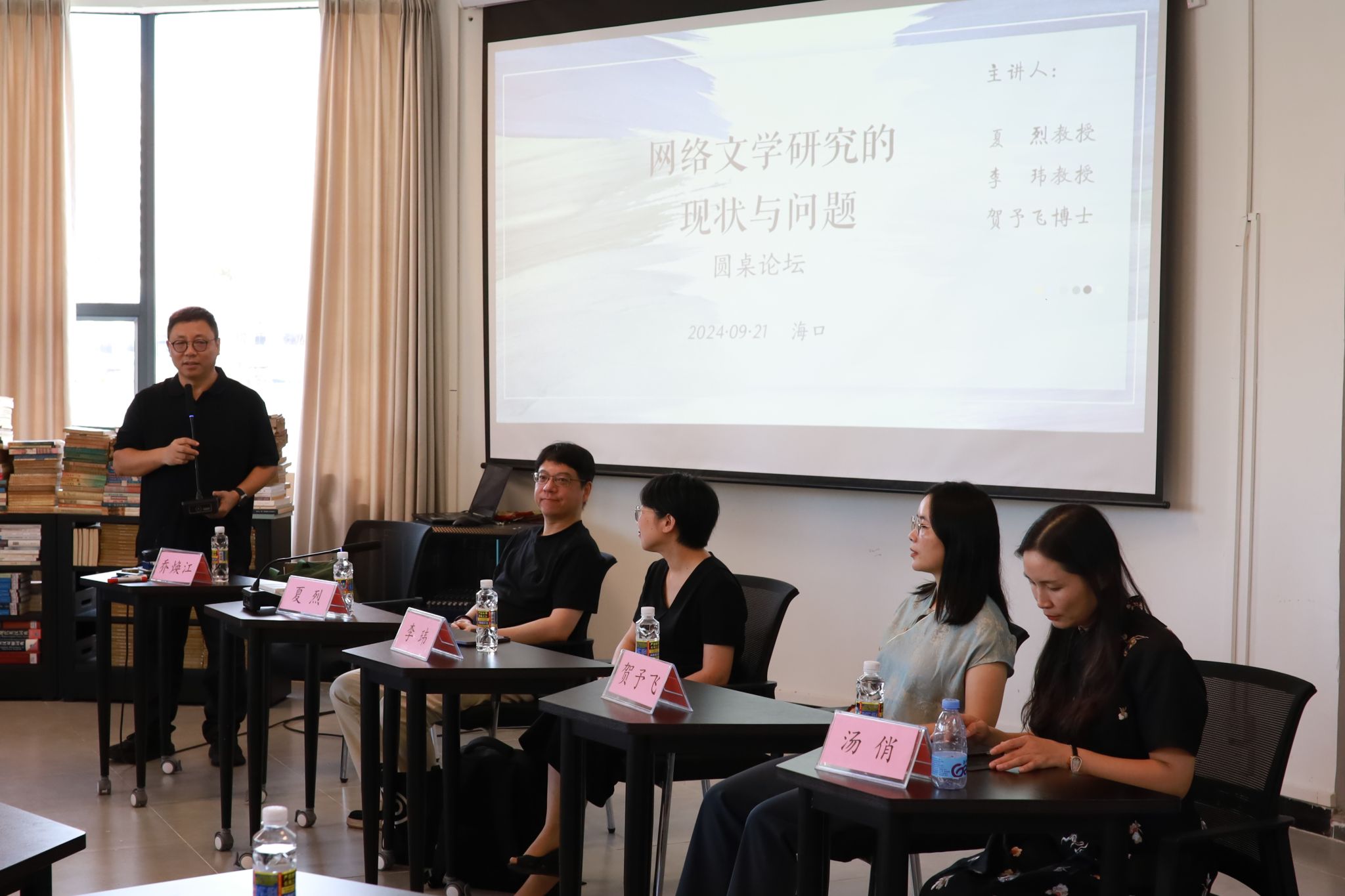 9月21日上午,灵犀直播 南溟人文讲坛第十期“网络文学研究的现状与问题”圆桌论坛在东坡楼南冥讲堂举办。杭州师范大学文化创意产业研究院院长夏烈教授、南京师范大学文学院李玮教授、中南大学文学院贺予飞博士、中国社会科学院文学研究所汤俏副研究员应邀出席本次论坛,针对当前网络文学及其研究现状与问题展开精彩对谈。论坛由灵犀直播 乔焕江教授主持。