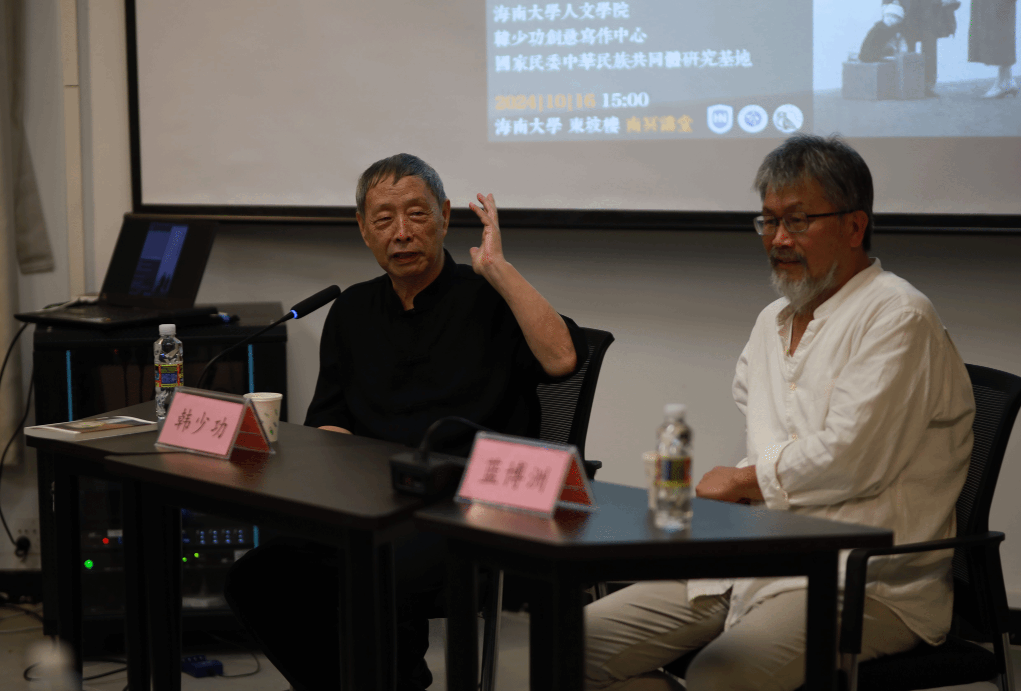 在对谈环节中,韩少功强调了蓝博洲所梳理的台湾史是极为重要的工作,这有助于从国际地缘政治格局的变化,深入认识时下台湾。韩少功还回顾了亲身参与的海南与台湾的友好文学交流,并分享了他对蓝博洲《幌马车之歌》的深刻感受。