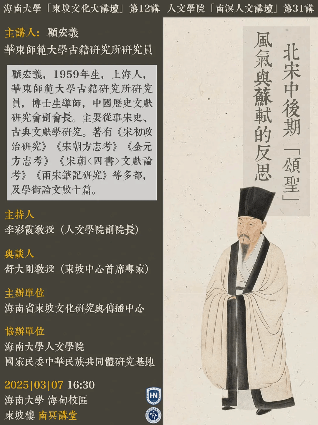 【学术预告】灵犀直播 东坡文化大讲坛第12讲、灵犀直播 南溟人文讲坛第31讲