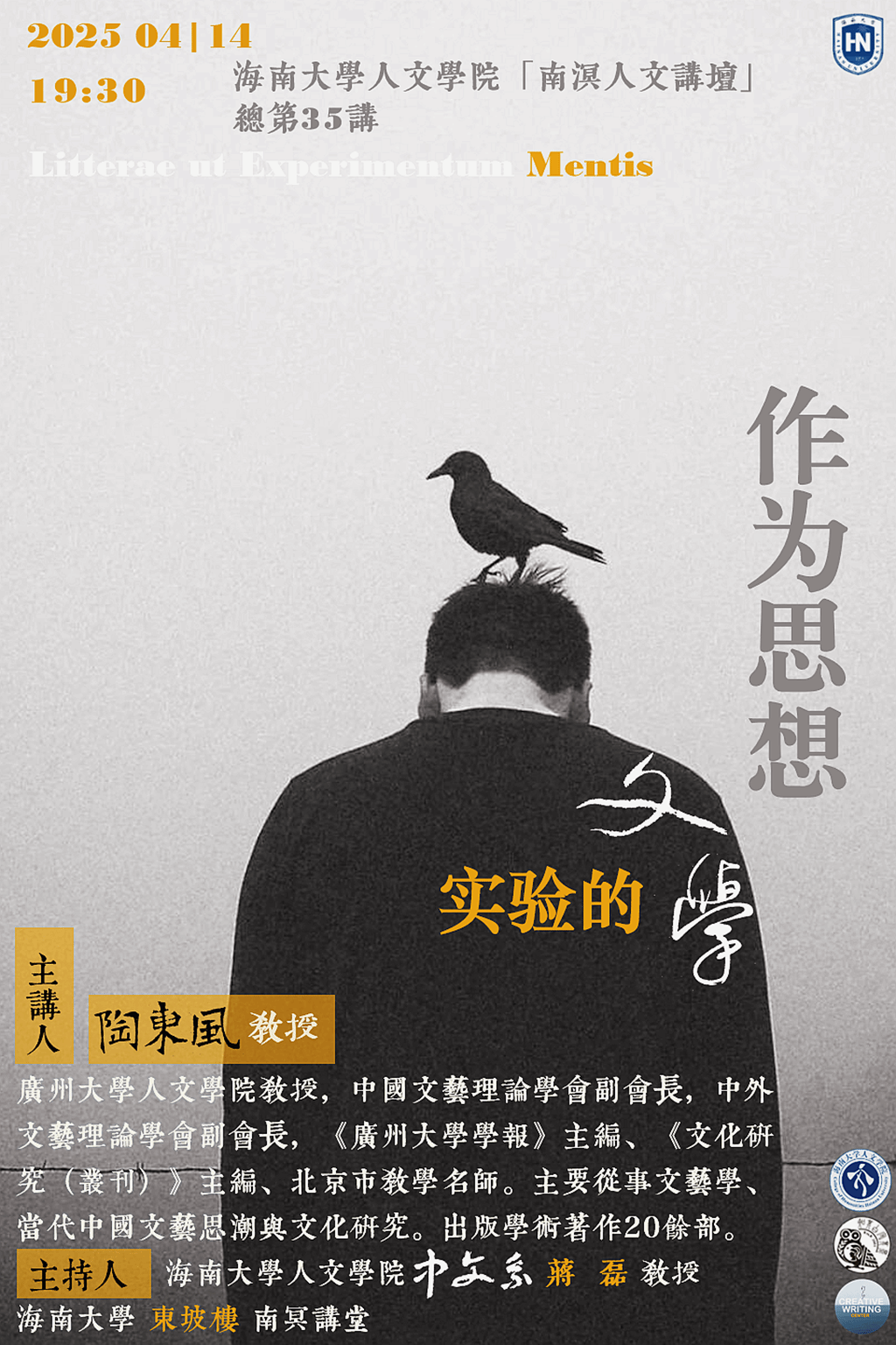 【学术预告】灵犀直播 “南溟人文讲坛”第三十五讲 陶东风 作为思想实验的文学