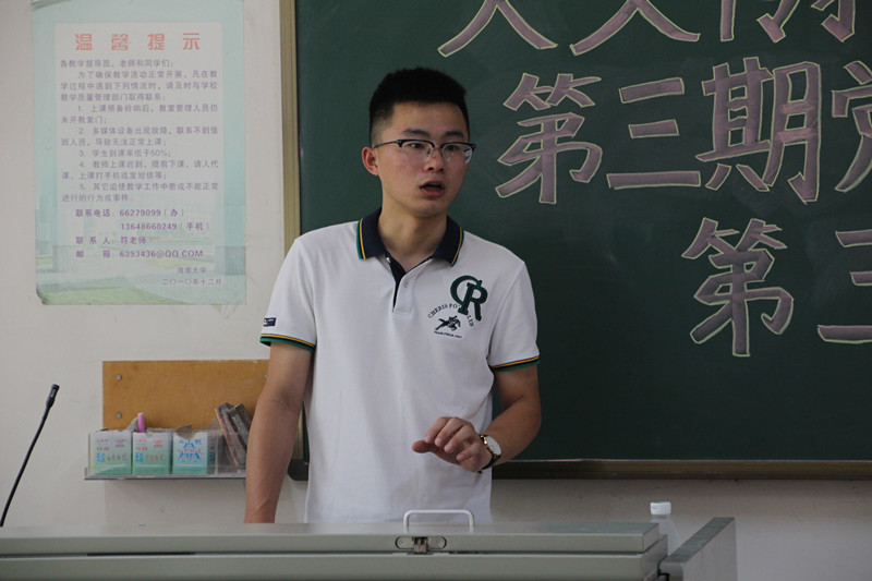 海甸校区2教101教室顺利开展。此次党课围绕中国共产党党员的条件、义务及权利展开,学工办李润东老师担任主讲人。