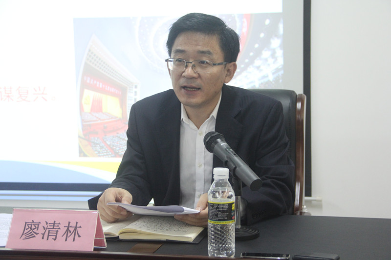 会议伊始,华世佳代表全体与会人员对廖清林的到来表示热烈欢迎和衷心感谢,接着,廖清林以“不忘初心、牢记使命”主题教育,推进“双一流”建设,实现“双一流”发展”为题,向与会人员分享了自己学习党的十九大精神的体会。首先,廖清林认为,作为党员,应该深刻领会党的十九大精神,他从“十个领会”入手,进行全面深入的分析解读。他提到,党的十九大报告主题鲜明、博大精深、立意深远、高屋建瓴,是我们党带领全国各族人民决胜全面建成小康社会、夺取中国特色社会主义伟大胜利的政治宣言和行动纲领,是21世纪科学社会主义的纲领性文件。