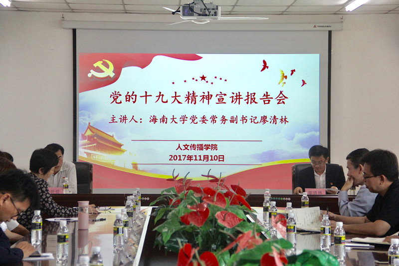 在党的十九大胜利闭幕后,人文传播学院迅速行动起来,第一时间组织传达学习,在全院掀起学习宣传贯彻党的十九大精神的热潮。2017年11月10日上午,人文传播学院于海甸校区社科楼B7社科楼七楼召开党的十九大精神宣讲报告会,校党委常务副书记廖清林受邀到会宣讲。校机关第五(校团委和学工处)党支部全体党员、人文传播学院全体教职工、学生党支部支委和学生党员代表参加了本次宣讲会。会议由院党委书记华世佳主持。
