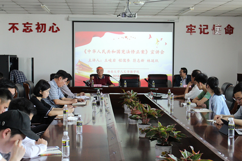 2018年3月27日下午,人文传播学院党委在海甸校区社科楼人文传播学院党员之家(B719会议室)举行《中华人民共和国宪法修正案》宣讲交流会。本次宣讲交流会邀请到法学院原院长王峻岩教授、学校特邀党建组织员程儒参、林廷玖、符志新等作为宣讲嘉宾,为灵犀直播