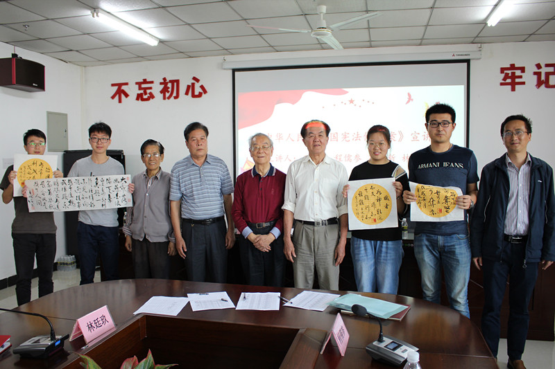 会议伊始,王峻岩教授向与会学生解读宪法修正案,王教授强调,要响应习近平主席的“宪法至上”理念,号召大家加强宪法的学习和宣传教育,弘扬宪法精神,与时俱进。王教授分别从“修改宪法的重大意义”、“如何修改宪法”和“修改了哪些内容”等三个方面入手,解读了宪法的重要性,并勉励与会师生自觉增强政治意识和宪法意识,成为中国特色社会主义事业的合格建设者和可靠接班人。同时,王教授还向与会学生普法解法,回顾历史,展望未来,强调了中国共产党的领导是中国特色社会主义的根本特征,侧重介绍了构建人类命运共同体对和平外交的重要影响,鼓励与会学生树立社会主义核心价值观。在王教授宣讲结束后,宣讲会进入了现场互动提问环节,与会学生与在场的老前辈们积极互动。其中一名同学针对王教授解读时所提到的天下太平,提出了“如何看待近期中美贸易战”的问题,得到了程儒参老师的激情解答,程老师由表及里为大家分析了这场纷争的本质,他认为我国针对该贸易战所作出的决策,是深入贯彻党的宗旨,符合人民利益的正确决策,在座学生们听后深受启发,受益匪浅。随后,学生们和与会嘉宾进行深入交流和讨论,程儒参、林廷玖和符志新老师对同学们的疑惑和想法提出了自己的看法,鼓励同学们努力提升自身政治意识和宪法意识,积极投身到中国特色社会主义现代化强国的建设当中去。
