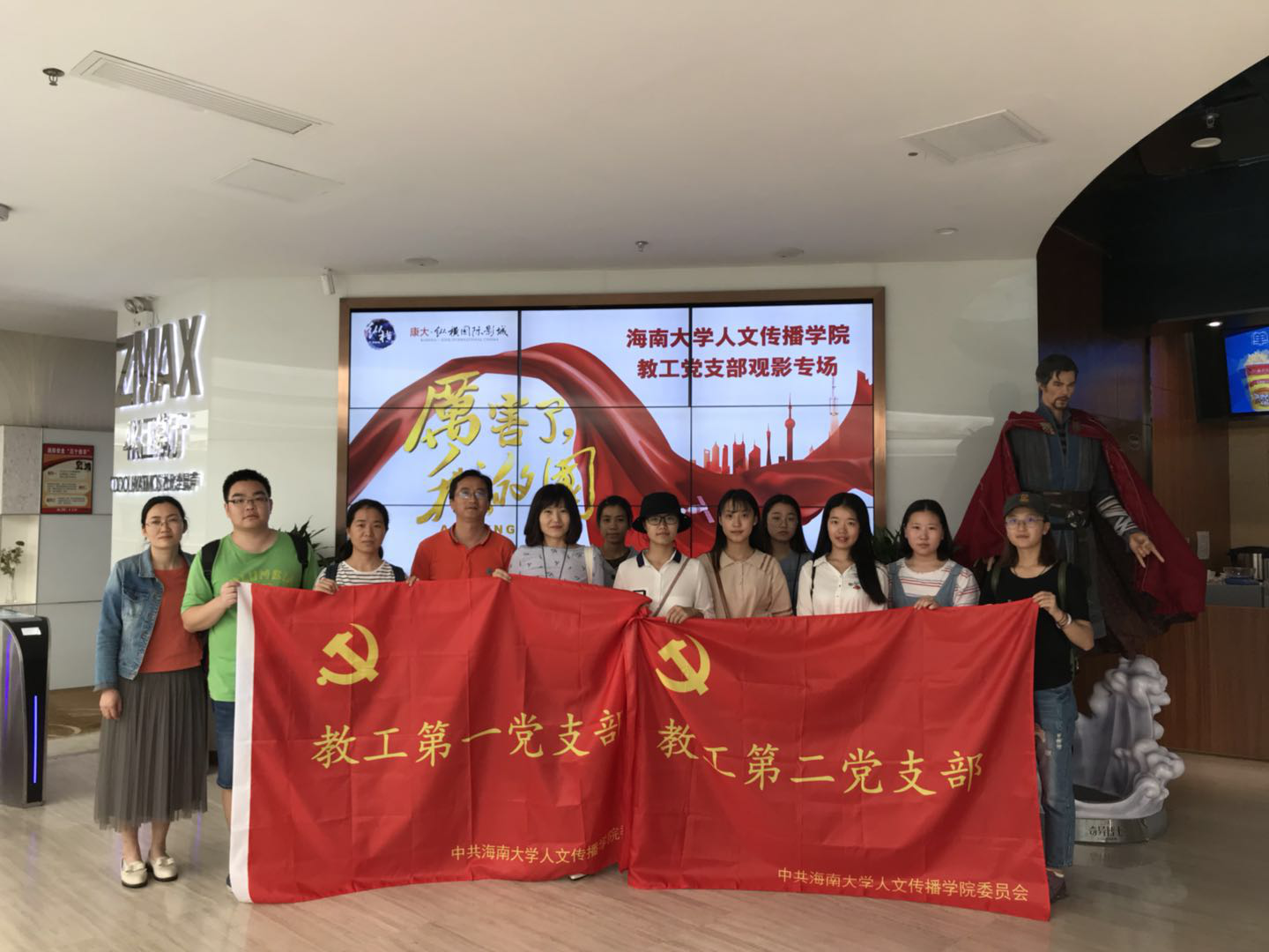 为深入学习习近平新时代中国特色社会主义思想,贯彻落实党的十九大精神,2018年4月3日下午,人文传播学院教工一支部、教工二支部党员和学生党员一起前往海甸城观看《厉害了,我的国》影片。观影过程中,大家聚精会神紧盯银幕,为祖国的强大露出自豪的微笑,被影片中感人事迹打动而留下激动的泪水。