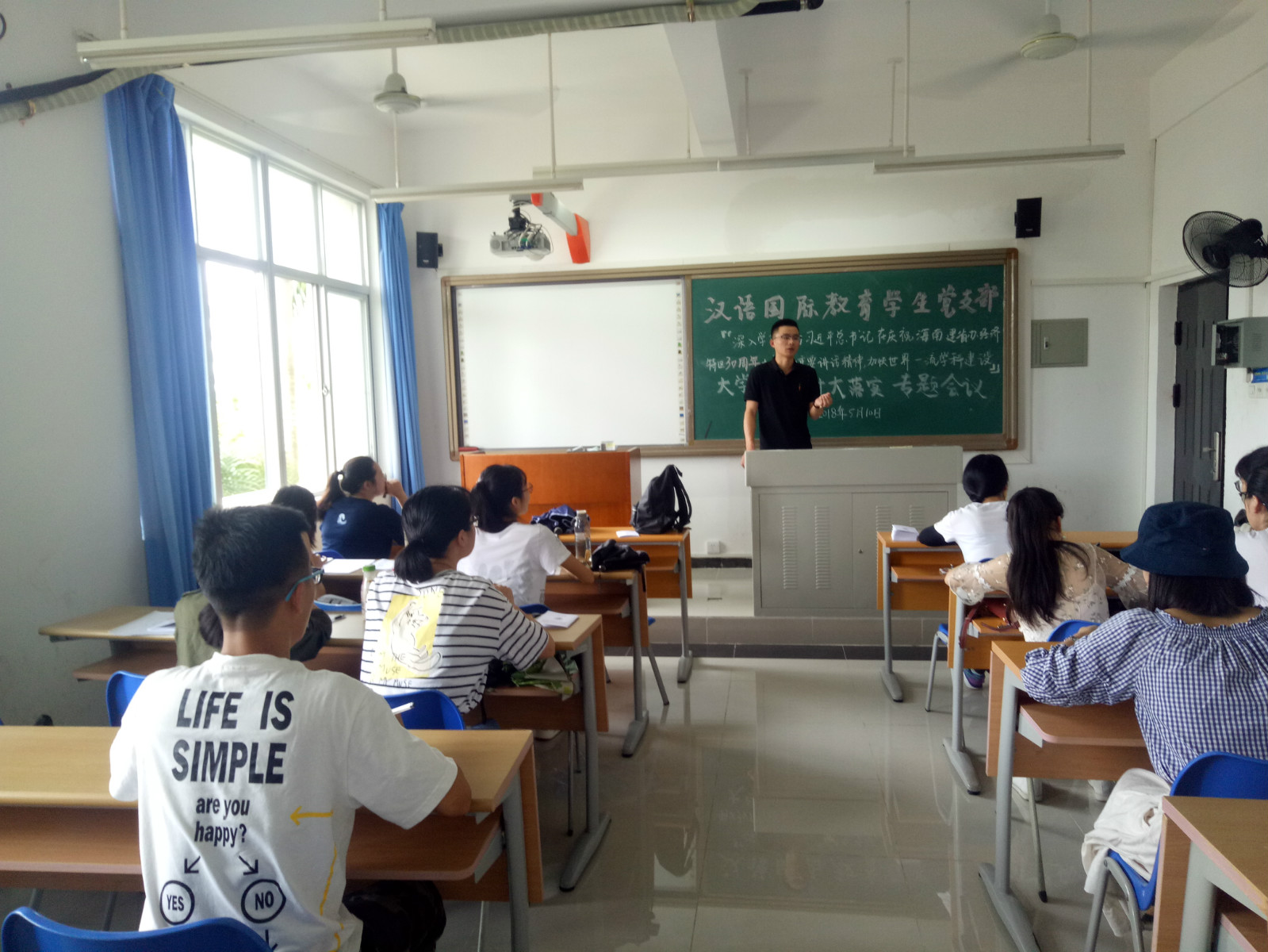 为响应学院“深入学习贯彻习近平总书记在庆祝海南建省办经济特区30周年大会上的重要讲话精神,加快世界一流学科建设”大学习大研讨大落实部署会议精神,5月10日上午,汉语国际教育学生党支部在5教219,开展大学习大研讨大落实专题会议。会议由党支部书记李润东主持,支部全体成员参加了会议。
