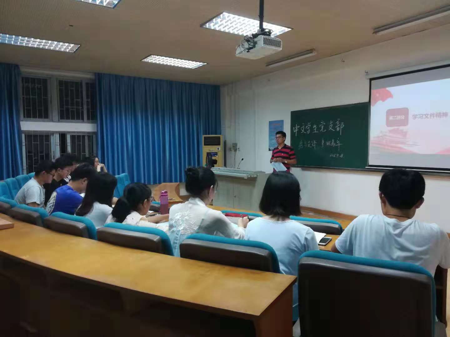 9月28日晚,人文传播学院中文学生党支部在2教201组织召开了“勇当先锋,做好表率”中文学生党支部专题读书交流会,会议由郭瑞鹏同志主持,支部全体党员参加此次读书交流学习。