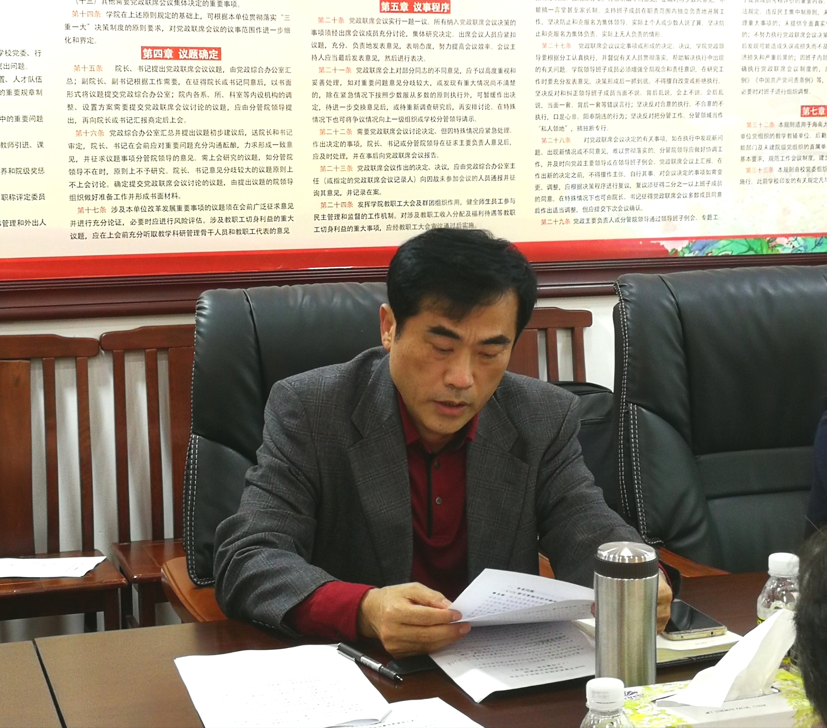 的工作实际,具有很强的针对性和指导性。我们要深刻理解,并将讲话精神列入年度重点工作计划和民主生活会整改措施,建立工作台帐,明确任务,责任到人,认真贯彻落实。学院将以此次民主生活会为契机,深入学习贯彻习近平新时代中国特色社会主义思想和党的十九大精神,充分调动学院领导班子成员和师生的积极性,以新气象新担当新作为落实好党中央、省委省政府各项决策部署,加快我校世界一流学科和国内一流大学建设的进程。