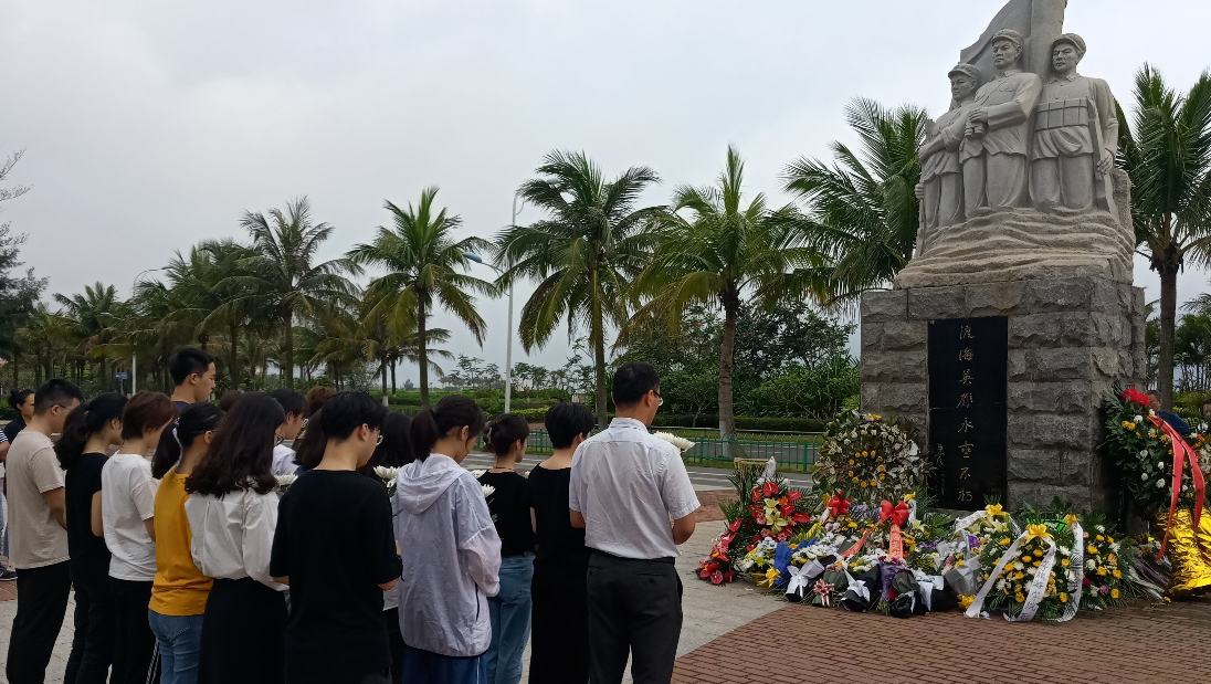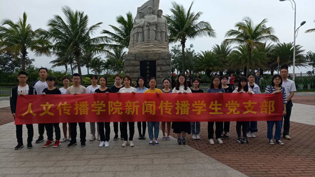 4月5日9:00,新闻传播学生党支部党员和入党积极分子来到海口市白沙门渡海英雄纪念碑前,开展“缅怀革命先烈,弘扬民族精神”为主题的清明祭扫活动。 活动开始后,全体成员面对纪念碑肃立,集体默哀,表达了对革命烈士的无限哀思。 随后,党员和积极分子依次献花,向革命烈士表达崇高的敬意。 最后,全体党员在党支部书记公衍峰的带领下,高举右拳,面对鲜红的党旗,重温了入党誓词。 本次活动,既表达了新闻传播学生党支部党员和积极分子对革命先烈的哀思,也是一次深刻的爱国主义教育。参与活动的党员及入党积极分子纷纷表示,要传承革命先烈精神,发扬革命传统,不忘初心、牢记使命,持续深入学习贯彻习近平新时代中国特色社会主义思想和党的十九大精神,时刻以一个共产党员的标准严格要求自己,不断努力,为共产主义事业奋斗终身。