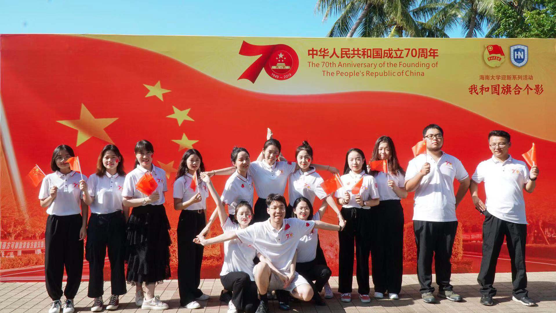 为迎接中华人民共和国成立70周年,引领支部党员深入学习贯彻习近平新时代中国特色社会主义思想和党的十九大精神,增强自身的国家荣誉感和历史使命感,2019年9月12日下午,人文传播学院戏剧影视文学学生党支部组织“唱红歌·与国旗同框”主题党日活动,通过歌唱祖国的形式深切表达了青年党员们对祖国的热爱与自豪。