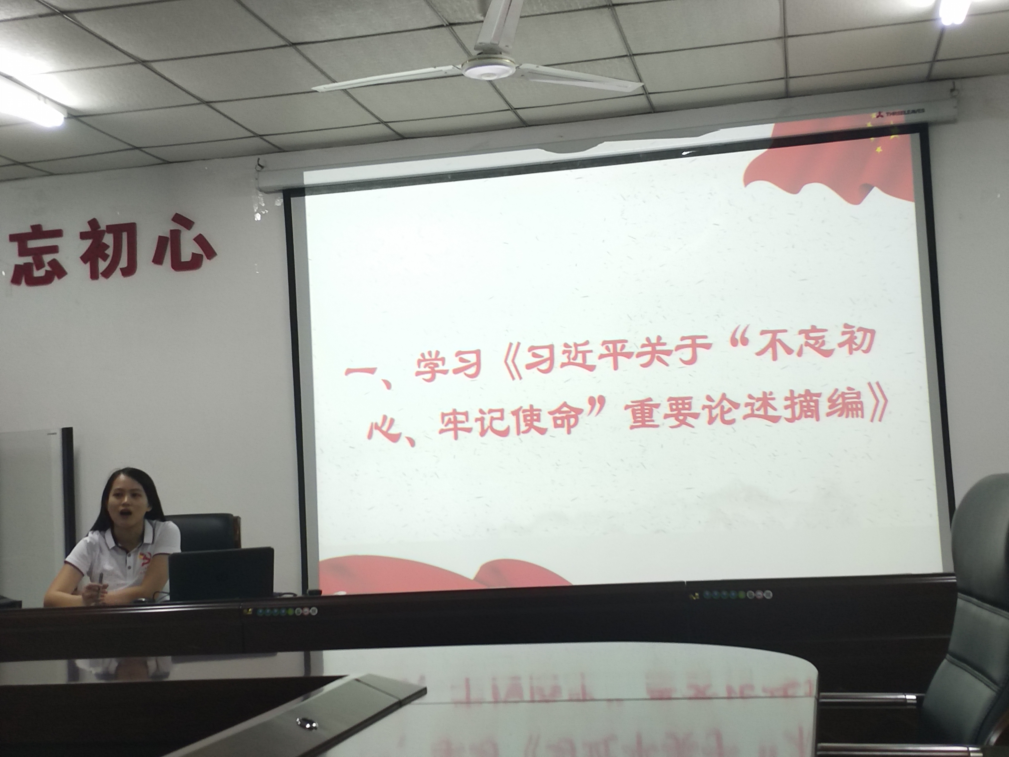 社科楼B719,召开了“不忘初心、牢记使命”主题教育会。会议首先集体学习了《习近平关于“不忘初心、牢记使命”论述摘编》中的“习近平于2015年7月1日给国测一大队老队员老党员的回信”和“习近平在2016年7月1日在庆祝中国共产党成立九十五周年大会上的讲话”。随后,开展了“不忘初心、牢记使命——还记得我们入党的初心吗?”主题讨论。每位党员都积极发言,党员们纷纷表示要将时不我待的责任感和使命感转化到实际学习和工作中来,不忘初心、牢记使命,立足本职,砥砺前行,从小事做起。