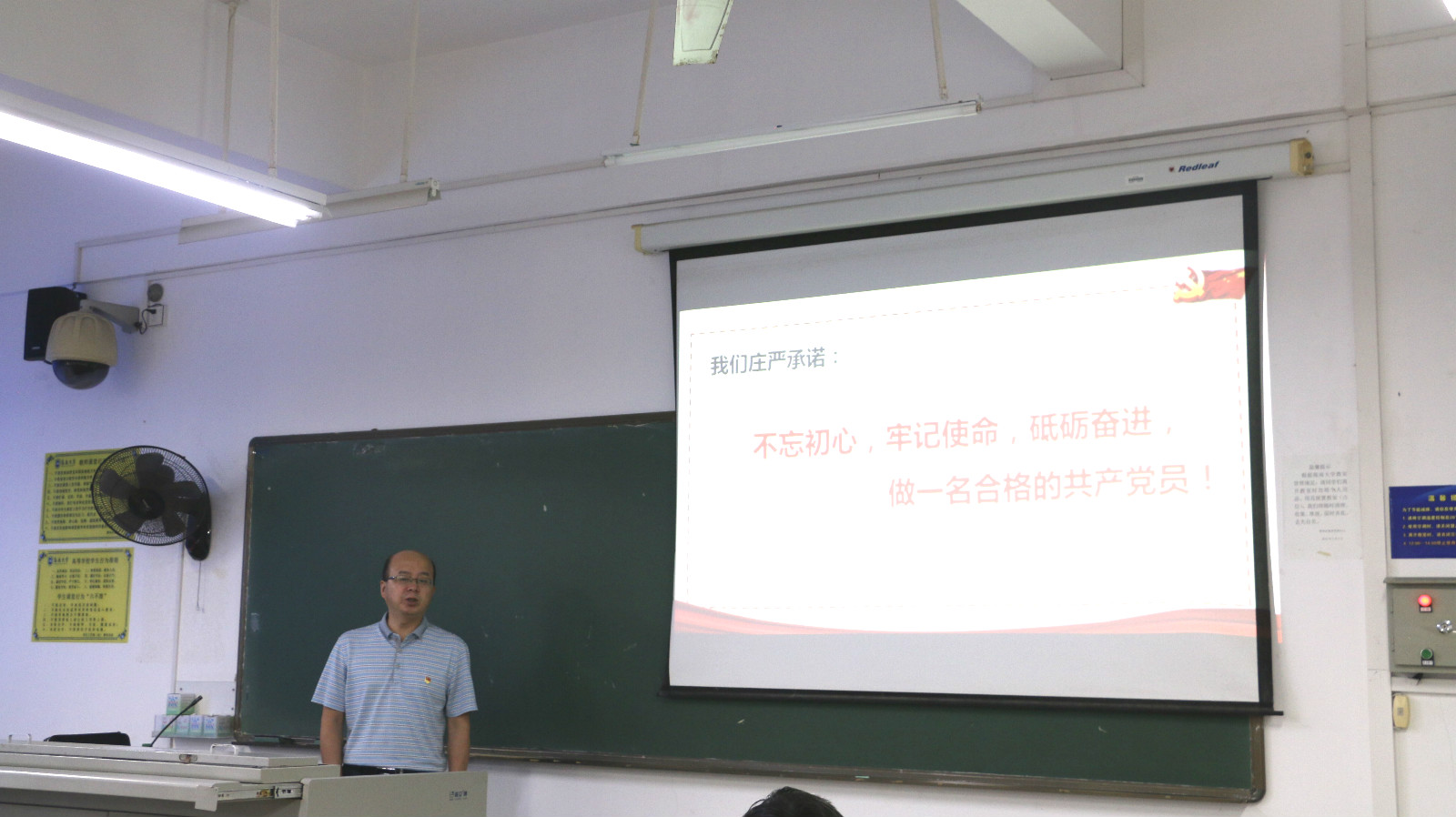最后,邱华祥书记带领与会党员重温入党誓词,大家面对党旗做出宣誓。至此,本次党课在洪亮庄重的入党宣誓声中圆满结束。