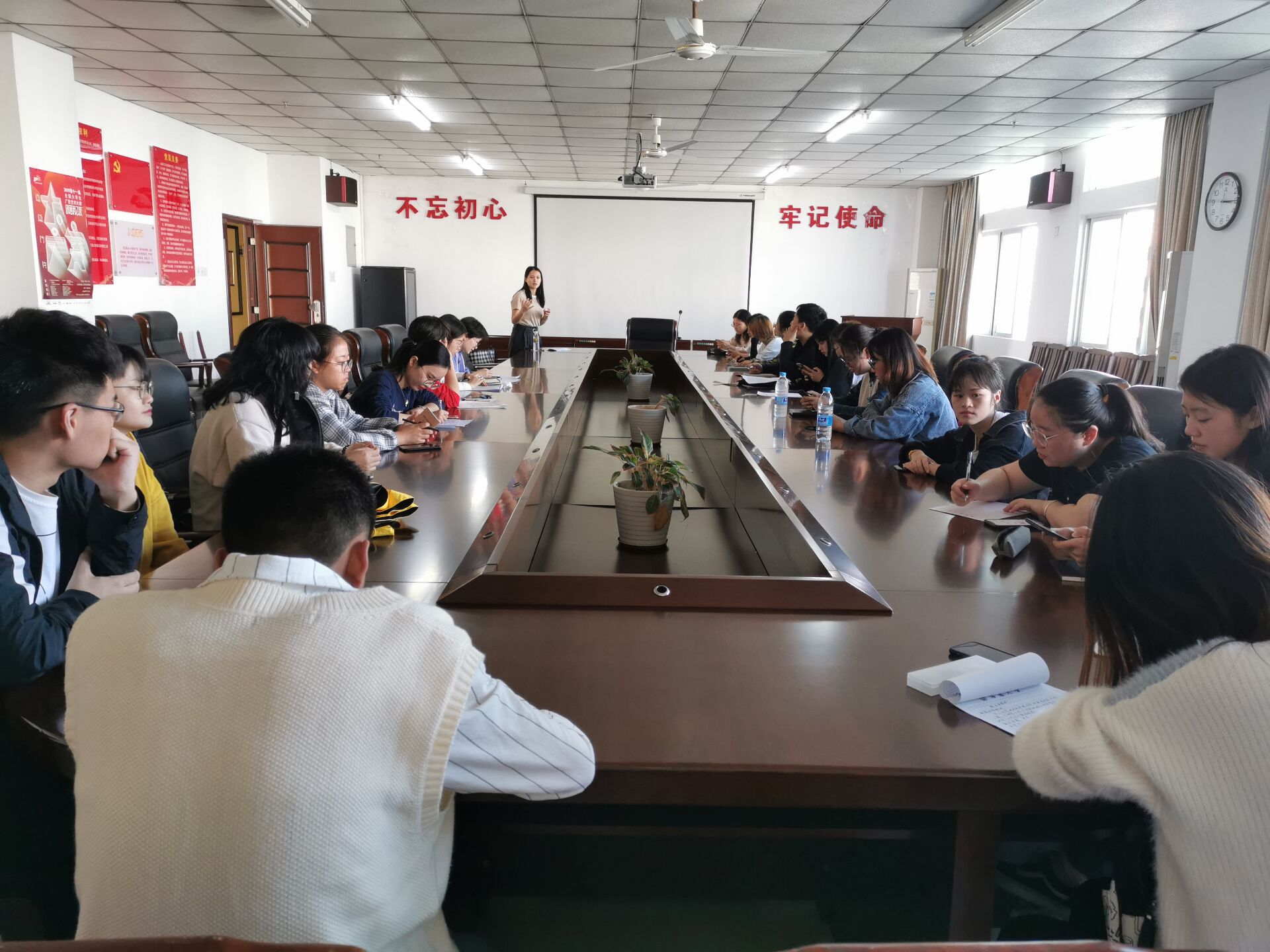 预备党员转正之后,党支部书记李洁进行总结发言,她首先对成功转为正式党员的同志们表示衷心的祝贺,同时希望党员们不忘初心,严格待己,遵守党的规章制度,养成良好的习惯。此外,带领全体党员一起学习党的十九届四中全会精神,并要求党员在寒假期间认真思考我们国家制度和国家治理体系,思考“应该坚持和巩固什么、完善和发展什么”这个重大政治问题。