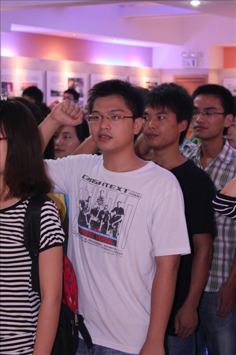 入党宣誓大会结束之后,大家都热血沸腾,心中充满对党的祝福与感恩。 人文通讯部 马彪