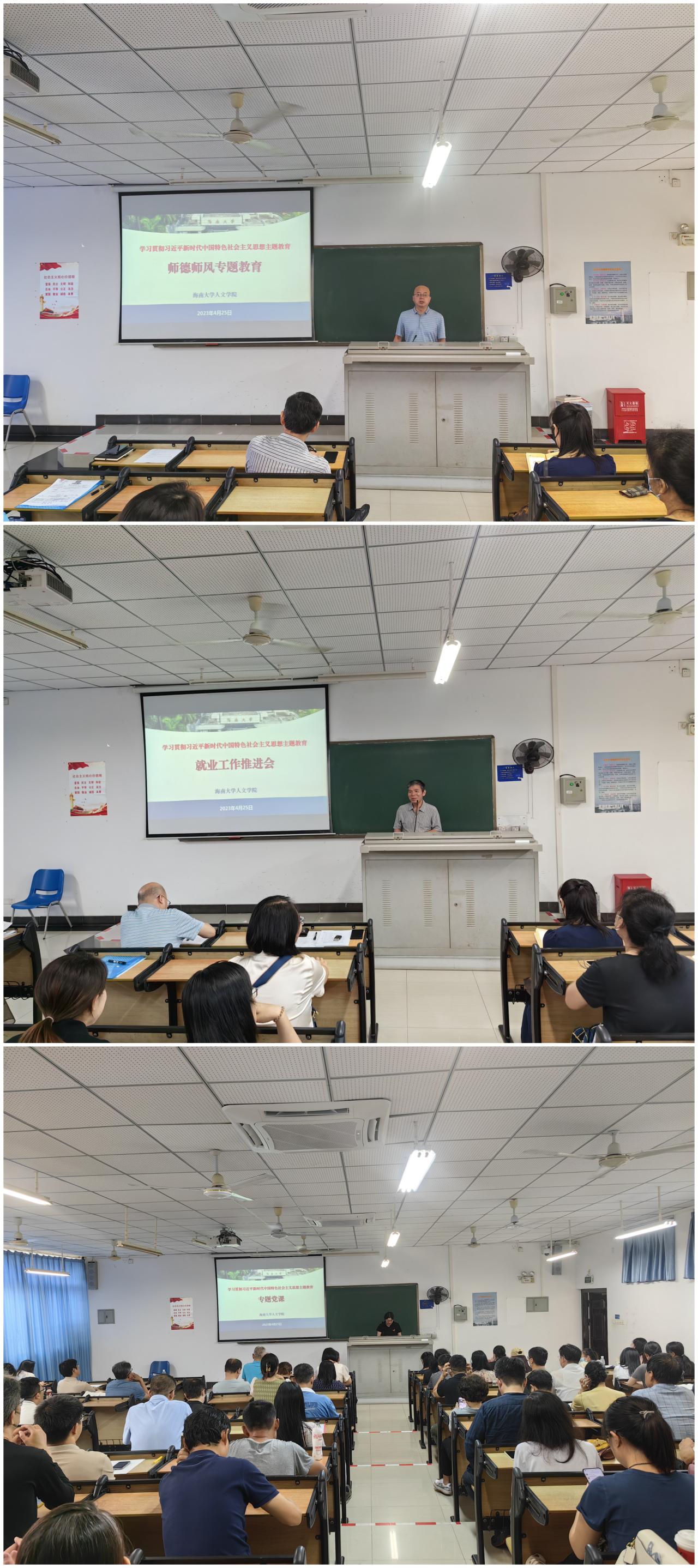 在5教202教室召开师德师风专题教育暨培训会,党员院领导分别讲授专题党课。学院领导班子成员、党委委员、全体党员和教职工参加。