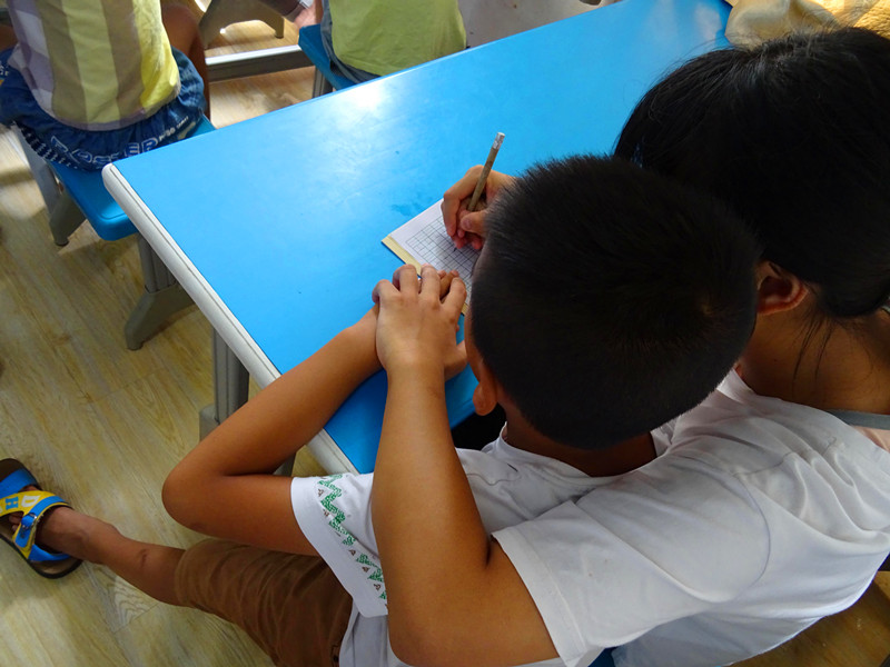 实践队员帮助自闭症儿童学习