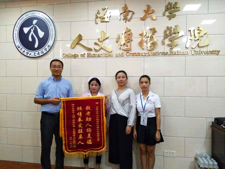 青年志愿者协会送来感谢锦旗,人文传播学院党委副书记孙晓媛、学工办主任公衍峰热情接待了来访人员,人文传播学院青年志愿者协会两位活动相关负责人一同参与了座谈,双方就长期合作和志愿活动成果展开了交流。