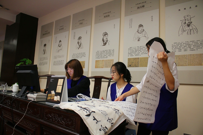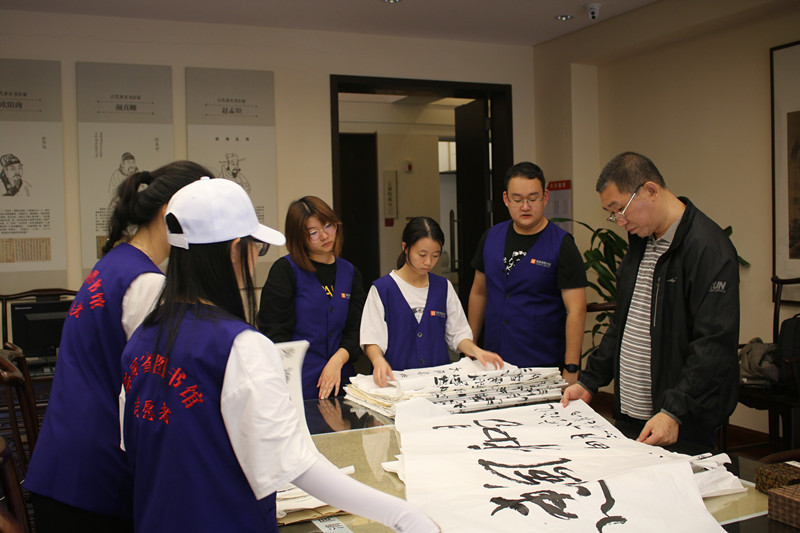 志愿者们到达古籍保护中心后,根据相关工作人员的安排,对“汉字记忆”活动中民间书法爱好者抄写的古文、诗词进行整理。在工作人员的指导下,志愿者们按照标准对书法作品进行分类筛选,接着对优秀书法作品进行盖章、登记存档,信息完善,最终将其装订封存作为馆藏档案。在此过程中,志愿者们分工协作,默契配合,随着时间的流逝,他们对工作愈加熟练,不久便将所有作品整理完毕并存入库中。在书香古韵弥漫的氛围中,本次活动圆满结束。