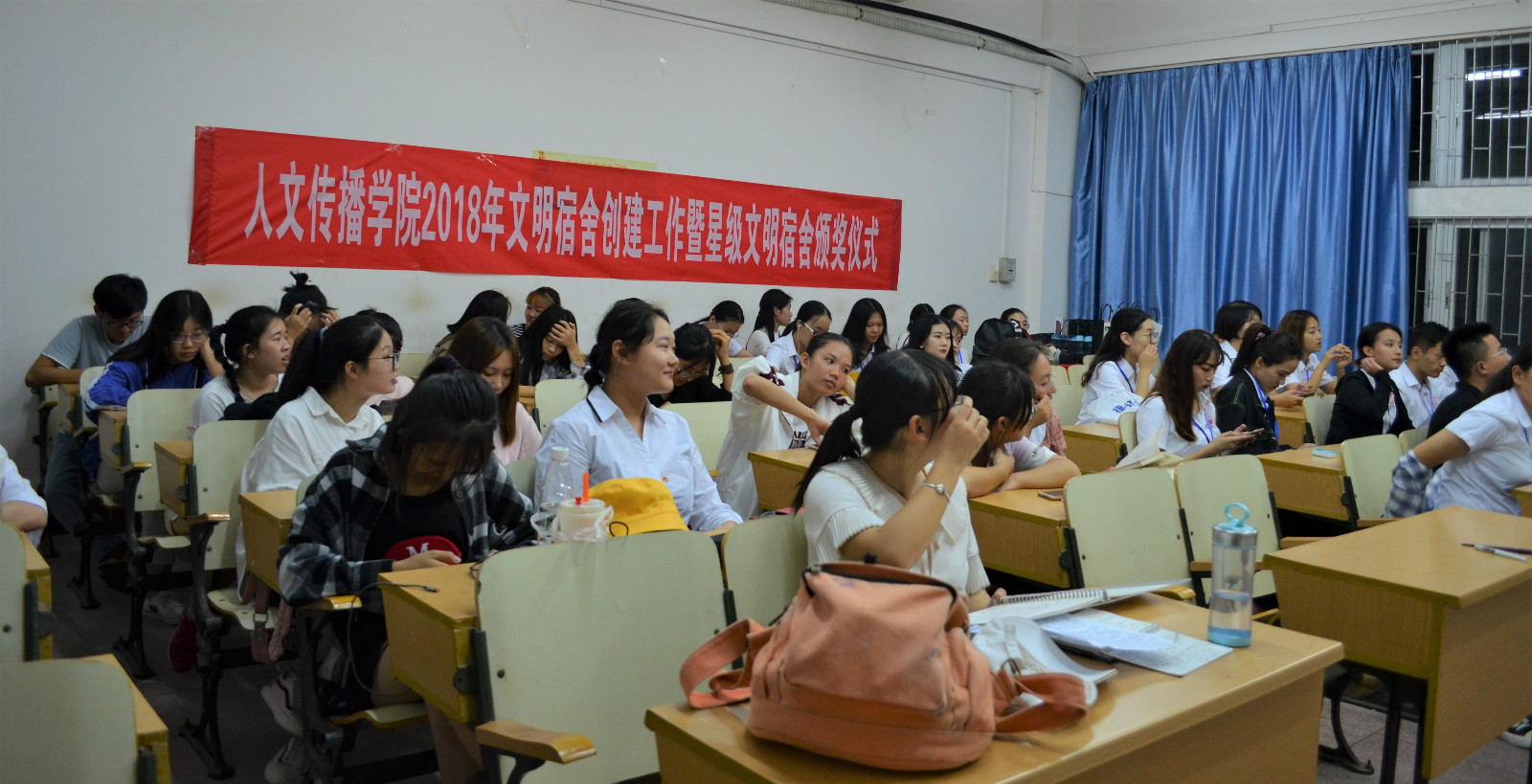 宿舍是大学生学习、生活的重要场所,为创建团结、文明、和谐的宿舍环境,按照学校相关要求,人文传播学院积极推动文明宿舍创建工作。期间涌现出了一批优秀宿舍,集中展现了学院宿舍创建中良好的精神风貌。11月17日晚,人文传播学院2018年文明宿舍创建工作暨星级文明宿舍评比颁奖仪式,在二教204教室顺利开展。学工办李润东老师、团学组织主席团、各部门学生骨干,以及海甸、城西两个校区优秀宿舍的学生代表参加了此次活动。