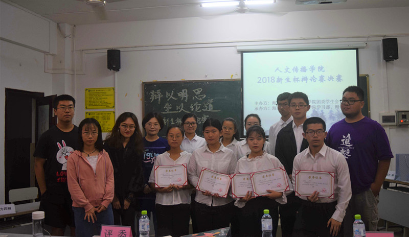 人文传播学院主席蒋正一,副主席唐雨婷、陈子君、黄朝恺出席本次辩论赛。